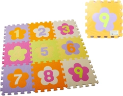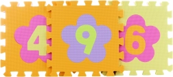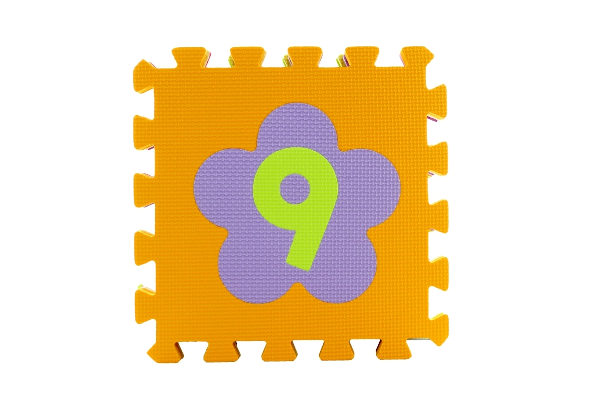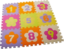 Πολύχρωμο αφρώδες παζλ με ψηφία και αποσπώμενα κομμάτια που δημιουργεί μια μαλακή και ασφαλή επιφάνεια παιχνιδιού για παιδιά από 3 ετών. Τα κομμάτια διαστάσεων 28 × 28 cm συνδέονται εύκολα, έχουν ραβδωτή αντιολισθητική επιφάνεια, είναι πλενόμενα, μειώνουν τον θόρυβο και μονώνουν από το κρύο. Η συσκευασία περιέχει 9 τετράγωνα κομμάτια.