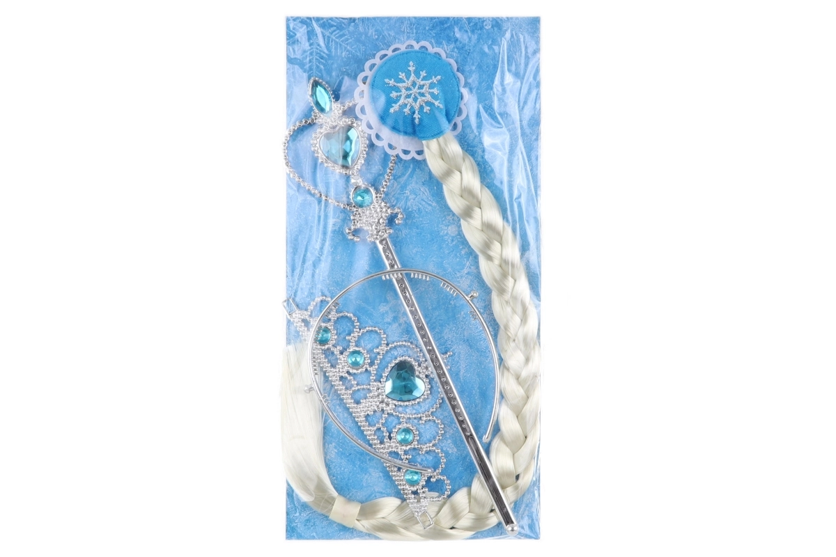 - Πλήρες σετ για πριγκίπισσες – στέμμα, σκήπτρο και μακριά πλεξούδα
