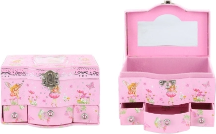 Με τις συμπαγείς διαστάσεις της περίπου 17 × 11,5 × 10 cm ταιριάζει τέλεια σε τουαλέτα, ράφι ή συρταριέρα. Χάρη στην ανθεκτική κατασκευή της είναι κατάλληλη και ως πρώτη κοσμηματοθήκη για παιδιά από 3 ετών. Εξαιρετική ιδέα δώρου που θα χαροποιήσει και θα κρατήσει τα κοσμήματα αποθηκευμένα με ασφάλεια.
