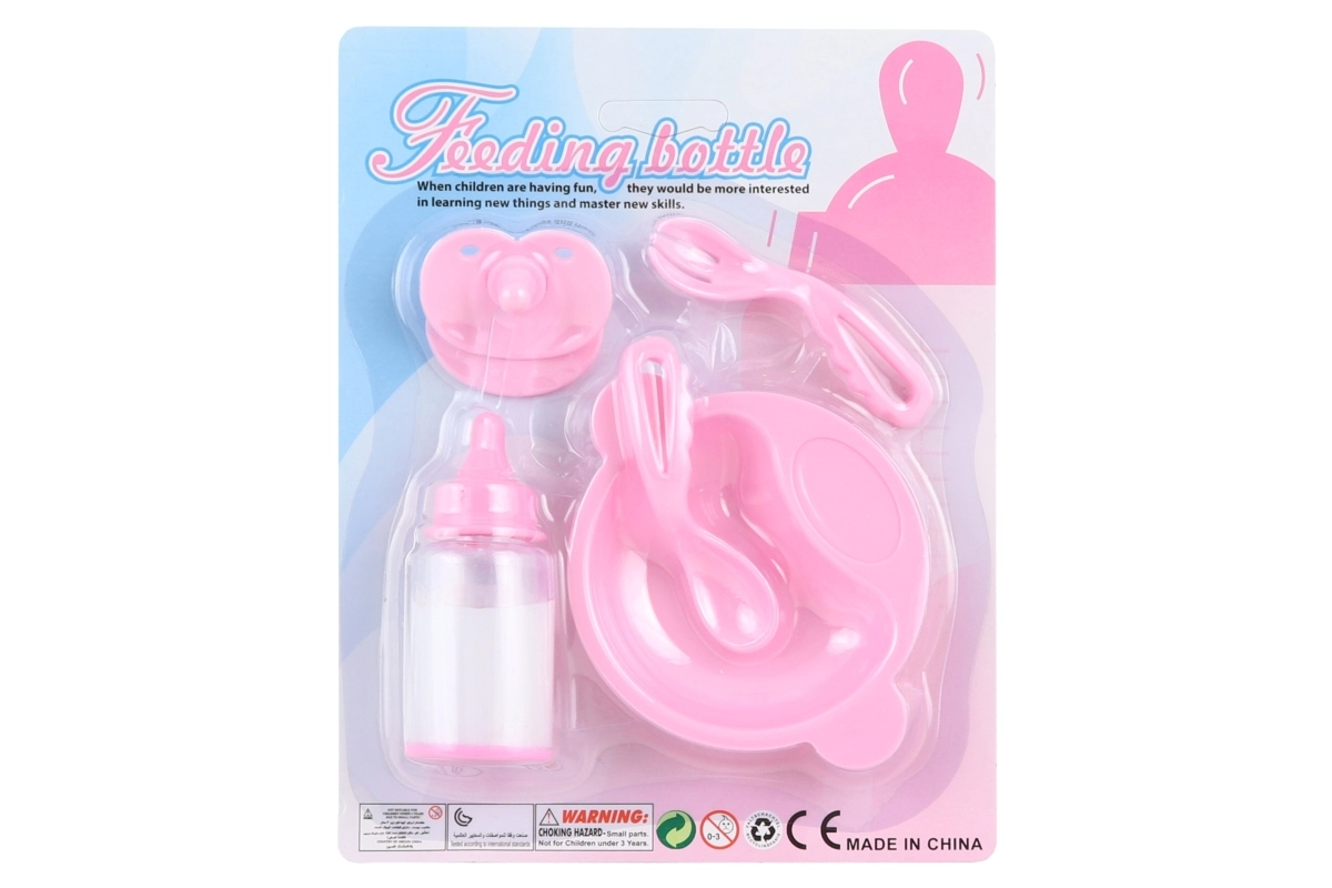 Σετ αξεσουάρ για κούκλες ιδανικό για παιχνίδια ρόλων «μαμάς», περιλαμβάνει μπιμπερό, πιπίλα, πιατάκι και μαχαιροπίρουνα. Τέλειο αξεσουάρ για κάθε μικρή φροντίστρια.