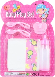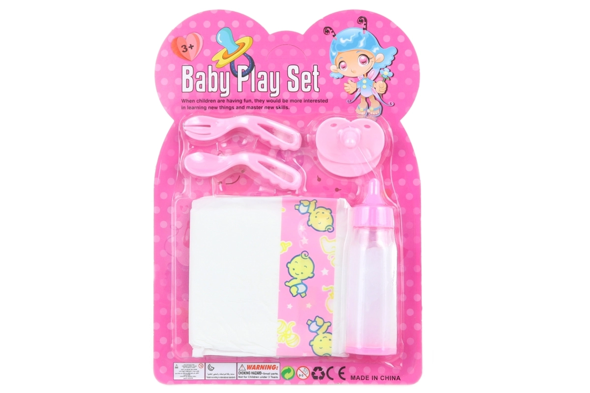 Το περιεχόμενο της συσκευασίας καλύπτει πλήρως τη φροντίδα: μπιμπερό για το πότισμα της κούκλας, πάνα για αλλαγή, πιπίλα για ηρεμία και μαχαιροπίρουνα για τάισμα. Χάρη στις compact διαστάσεις, το σετ είναι κατάλληλο και για ταξίδια και αποθηκεύεται εύκολα.