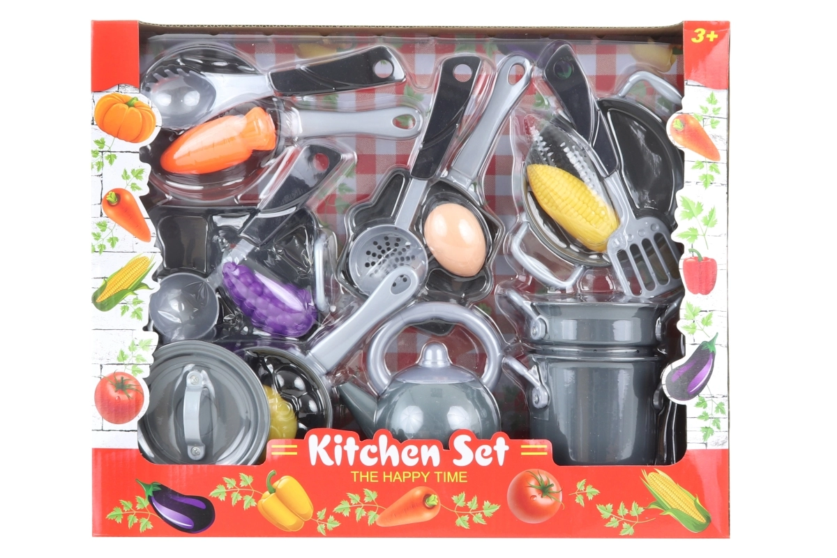 - Κατσαρολάκι με καπάκι, κατσαρόλα με σουρωτήρι, τσαγιέρα, ταψί, 2 τηγάνια, γουόκ, αξεσουάρ και ομοιώματα τροφίμων