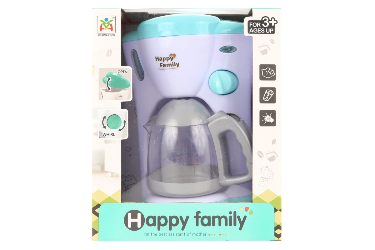 Διασκεδαστική παιδική καφετιέρα από πλαστικό με μπαταρίες, προσφέρει στα παιδιά ρεαλιστική εμπειρία προετοιμασίας καφέ. Η συσκευή φωτίζει και παράγει ήχους όπως μια πραγματική καφετιέρα, ιδανική για παιχνίδι σπιτιού. Τροφοδοτείται από 2× μπαταρίες AA (δεν περιλαμβάνονται). Κατάλληλη για παιδιά από 3 ετών.