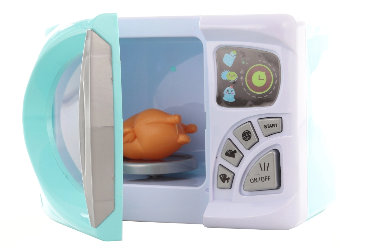 Αυτός ο παιδικός φούρνος μικροκυμάτων σε τιρκουάζ και λευκό είναι ιδανικό συμπλήρωμα για κάθε παιδική κουζίνα. Με την ενεργοποίηση, ο δίσκος μέσα περιστρέφεται και το παιχνίδι συνοδεύεται από φωτεινά εφέ που μιμούνται πιστά μια πραγματική συσκευή.