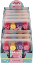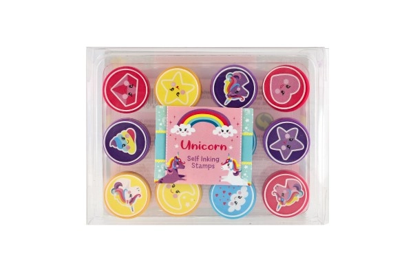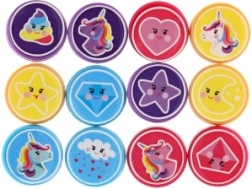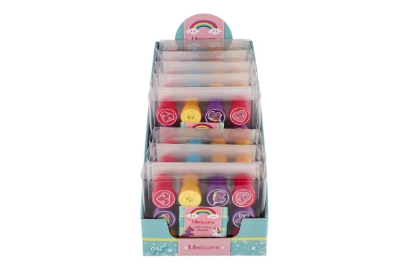 Κάθε σετ περιλαμβάνει 12 διαφορετικές σφραγίδες με μονόκερους, αστέρια, καρδούλες και σύννεφα. Τα παιδιά μπορούν εύκολα να αναμειγνύουν και να συνδυάζουν αποτυπώματα για κάρτες ή για τη διακόσμηση τετραδίων.