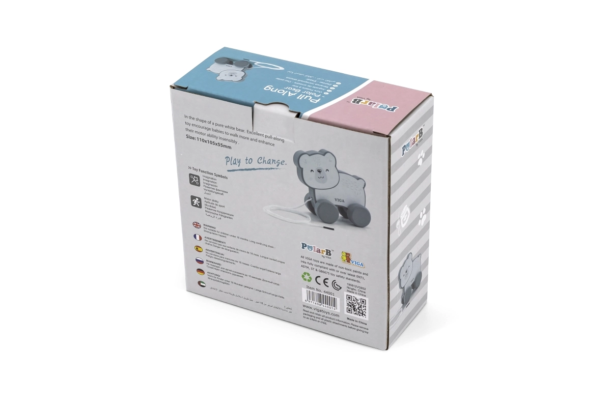 Ανακαλύψτε τη χαρά του παραδοσιακού παιχνιδιού με αυτό το ξύλινο συρόμενο Παγόμορφο Αρκουδάκι. Είναι σχεδιασμένο για εύκολο πιάσιμο και τράβηγμα, βοηθώντας στην ανάπτυξη του συντονισμού ματιού-χεριού και της λεπτής κινητικότητας για παιδιά από 18 μηνών.
