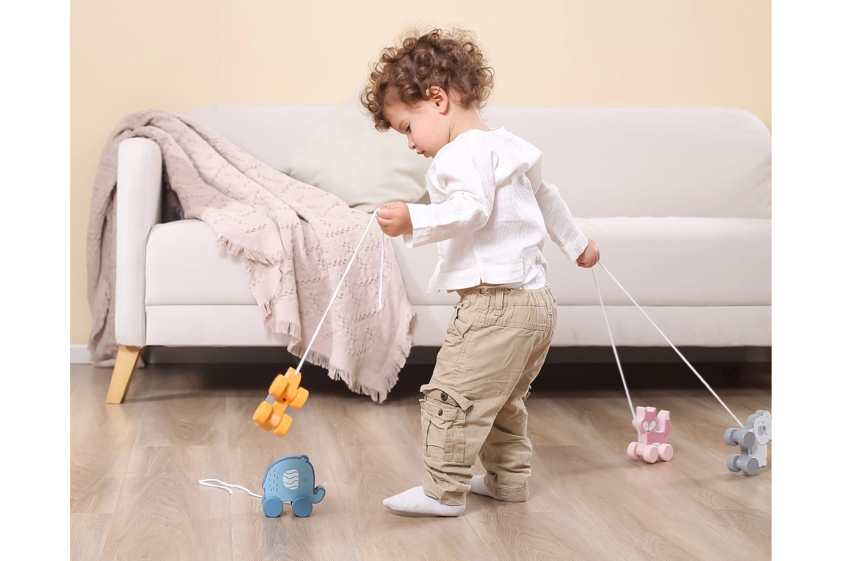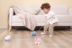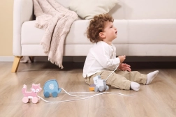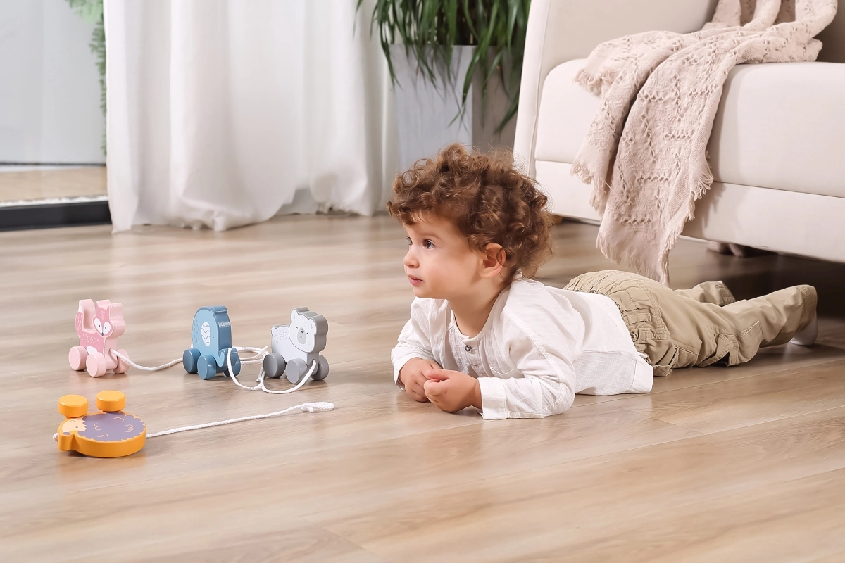 Χάρη στους κινητούς τροχούς και στη δυνατότητα έλξης, το παιχνίδι ενισχύει τη σωματική ανάπτυξη και τον συντονισμό.