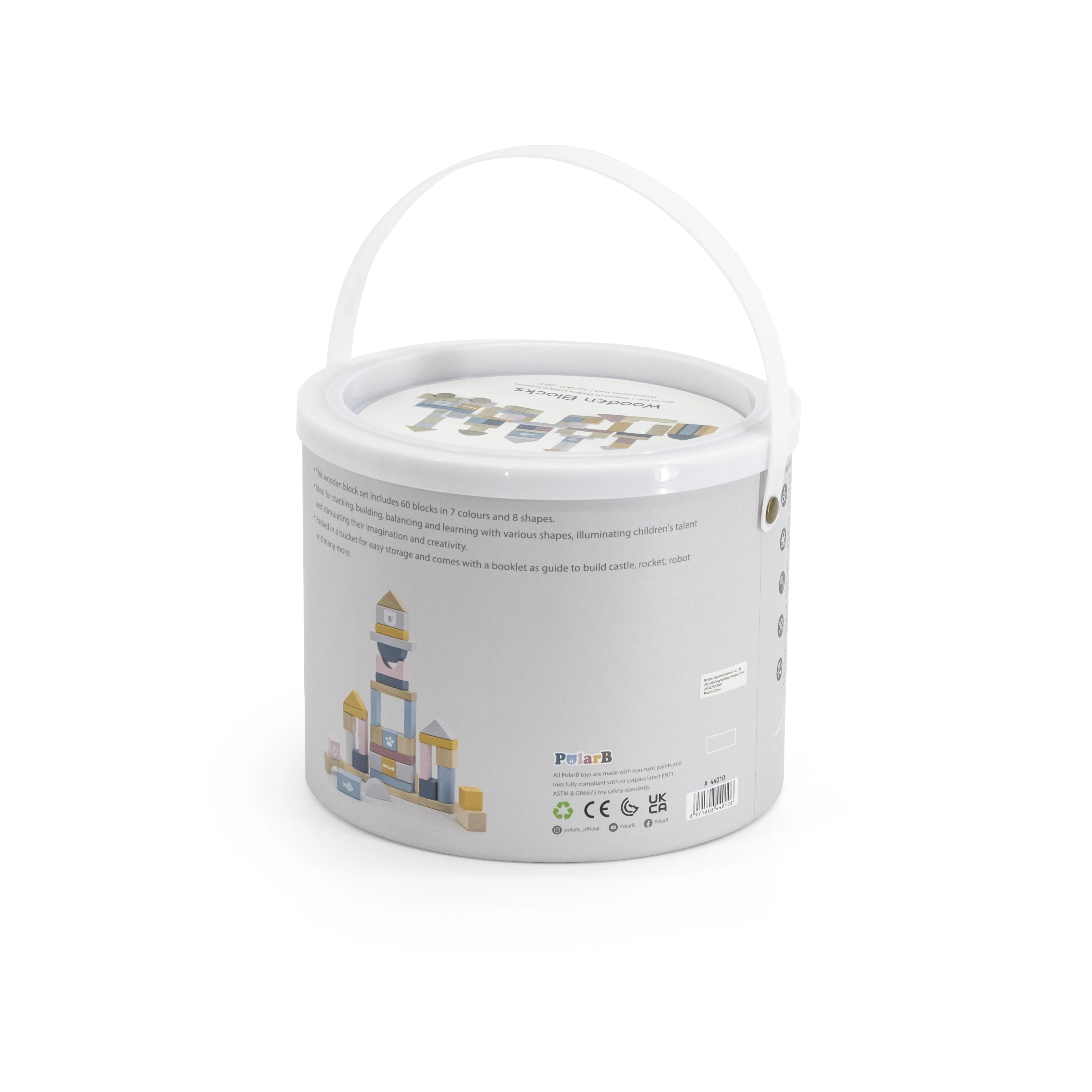 Τα ξύλινα δομικά τουβλάκια Viga PolarB προσφέρουν χαρά στην ανακάλυψη και τη δημιουργία. Το σετ περιλαμβάνει συνολικά 60 τουβλάκια διαφόρων σχημάτων και χρωμάτων, που διεγείρουν τη φαντασία των παιδιών και υποστηρίζουν την επιδεξιότητά τους. Χάρη στη χρήση μη τοξικών βαφών είναι ασφαλή για παιχνίδι και ταυτόχρονα φιλικά προς το περιβάλλον. Η αποθήκευση σε πλαστικό δοχείο επιτρέπει εύκολη και πρακτική τακτοποίηση μετά από κάθε παιχνίδι.