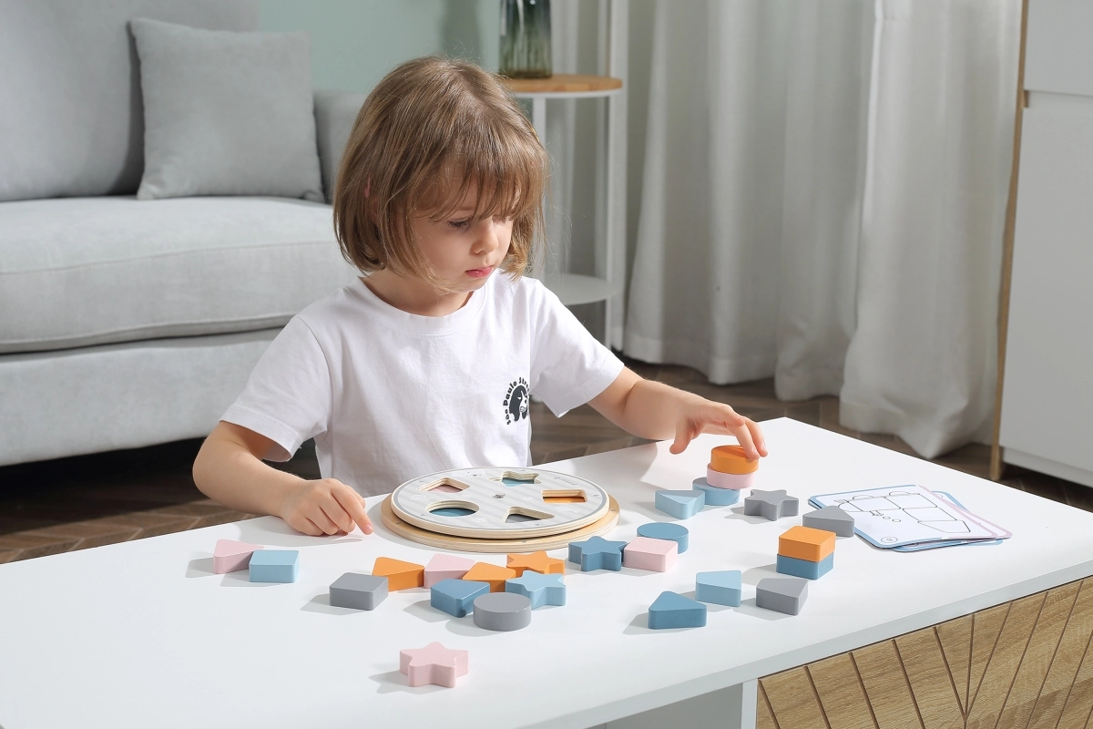 Ανακαλύψτε ένα διασκεδαστικό και εκπαιδευτικό παιχνίδι, χάρη στο οποίο τα παιδιά μαθαίνουν φυσικά την αναγνώριση σχημάτων και χρωμάτων. Η περιστρεφόμενη βάση επιτρέπει την αλλαγή των χρωματικών μοτίβων, ώστε το παιχνίδι να παραμένει πάντα ελκυστικό και ευέλικτο. Οι κάρτες προτύπων καθοδηγούν τα παιδιά βήμα προς βήμα και αναπτύσσουν τη λογική, τη συγκέντρωση και τον συντονισμό χεριού–ματιού.