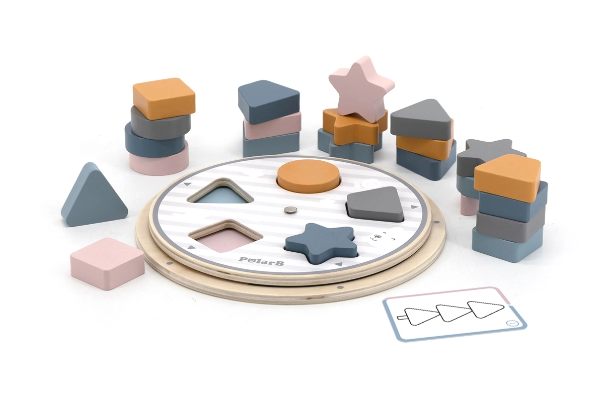 Έξυπνο ξύλινο παιχνίδι για τους μικρούς, που συνδυάζει ταξινόμηση σχημάτων και χρωμάτων, εξασκεί τη λεπτή κινητικότητα και τη λογική σκέψη. Περιλαμβάνει ξύλινα κομμάτια, περιστρεφόμενη βάση, κάρτες με πρότυπα και υφασμάτινο πουγκί. Το παιχνίδι της συλλογής POLARB είναι φτιαγμένο από ποιοτικό ξύλο, βαμμένο με μη τοξικά χρώματα σε απαλές παστέλ αποχρώσεις και ταυτόχρονα διασκεδάζει, διδάσκει και αναπτύσσει τα παιδιά από πολύ μικρή ηλικία.