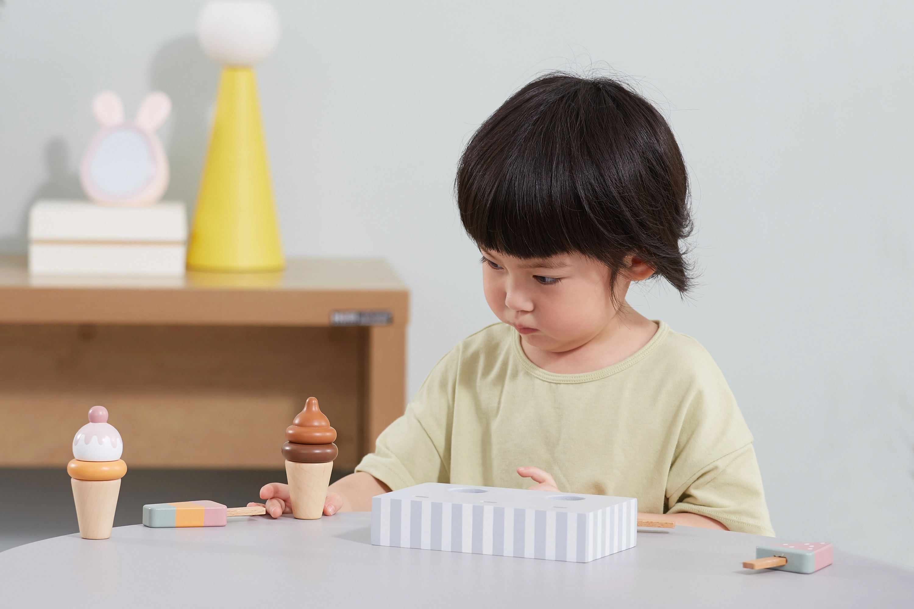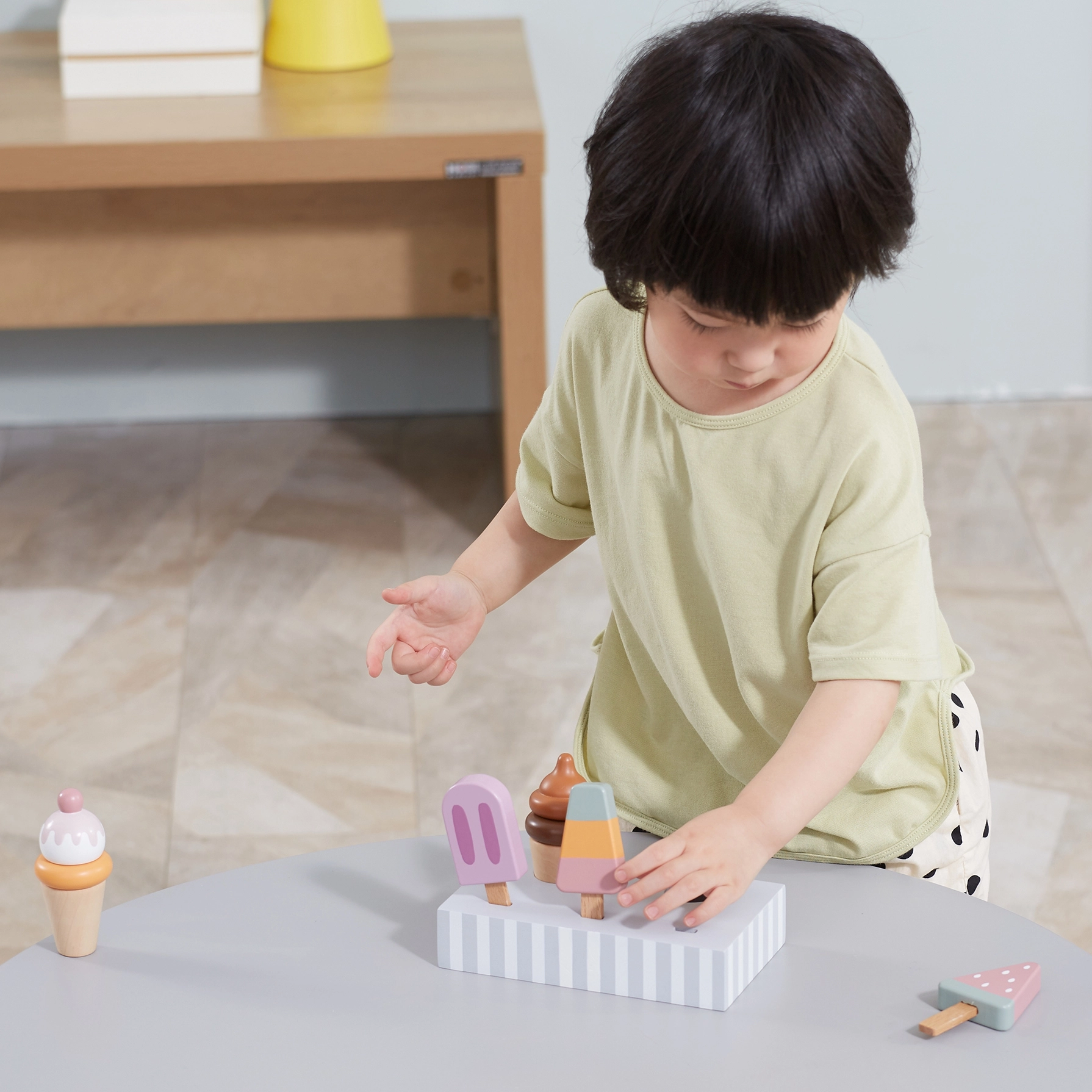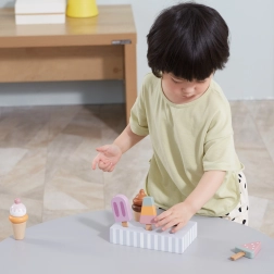 Πέντε διαφορετικά παγωτά εμπνέουν τα παιδιά σε παιχνίδια ρόλων, αναπτύσσουν το λεξιλόγιο και τις κοινωνικές δεξιότητες μέσα από το κοινό παιχνίδι.
