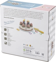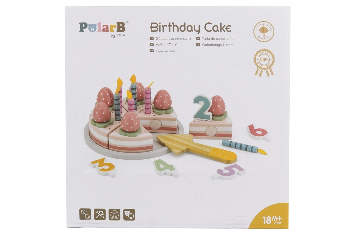 Μια χαριτωμένη ξύλινη τούρτα για κόψιμο από τη μάρκα VIGA της συλλογής POLARB προσφέρει ώρες δημιουργικού παιχνιδιού και μάθησης μέσα από το παιχνίδι. Αποτελείται από 6 κομμάτια τούρτας, αποσπώμενα κεράκια, φραουλίτσες, πιάτο, ξύλινη σπάτουλα και κυβάκια με αριθμούς για πρώτες ασκήσεις μέτρησης. Κατασκευασμένη από ποιοτικό ξύλο και βαμμένη με μη τοξικά χρώματα – μια ασφαλής επιλογή για μικρούς σεφ.