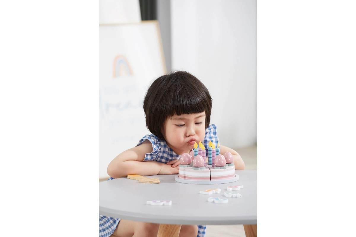 Το κόψιμο, το στόλισμα και το σερβίρισμα της τούρτας καλλιεργούν τη φαντασία, τη λεπτή κινητικότητα και την επικοινωνία στο ομαδικό παιχνίδι.