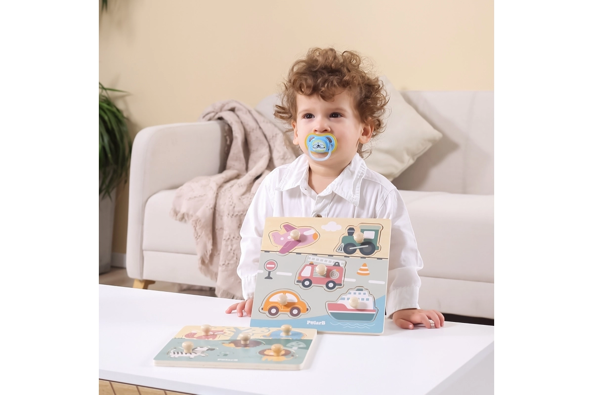 Τα ξύλινα παζλ PolarB συνδυάζουν ποιοτικά υλικά και προσεγμένο σχεδιασμό για μικρούς εξερευνητές. Κάθε κομμάτι διαθέτει ξύλινη λαβή για εύκολο πιάσιμο από τα μικρά δαχτυλάκια και ακριβή τοποθέτηση στη σχετική εγκοπή. Κάτω από κάθε σχήμα υπάρχει στη βάση ζωγραφισμένη εικόνα ζώου, που καθοδηγεί τα παιδιά και τα παρακινεί να συνεχίσουν το στήσιμο.
