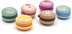 Το σετ περιλαμβάνει έξι μακαρόν σε διαφορετικά χρώματα με παιχνιδιάρικα μοτίβα (καρδιές, φρούτα, ζωάκια) που καλλιεργούν τη φαντασία και το θεματικό παιχνίδι.