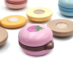 Τα μακαρόν είναι κατασκευασμένα από ποιοτικό ξύλο και φινιρισμένα με μη τοξικές μπογιές – ιδανικά για καθημερινό παιχνίδι μικρών ζαχαροπλαστών.