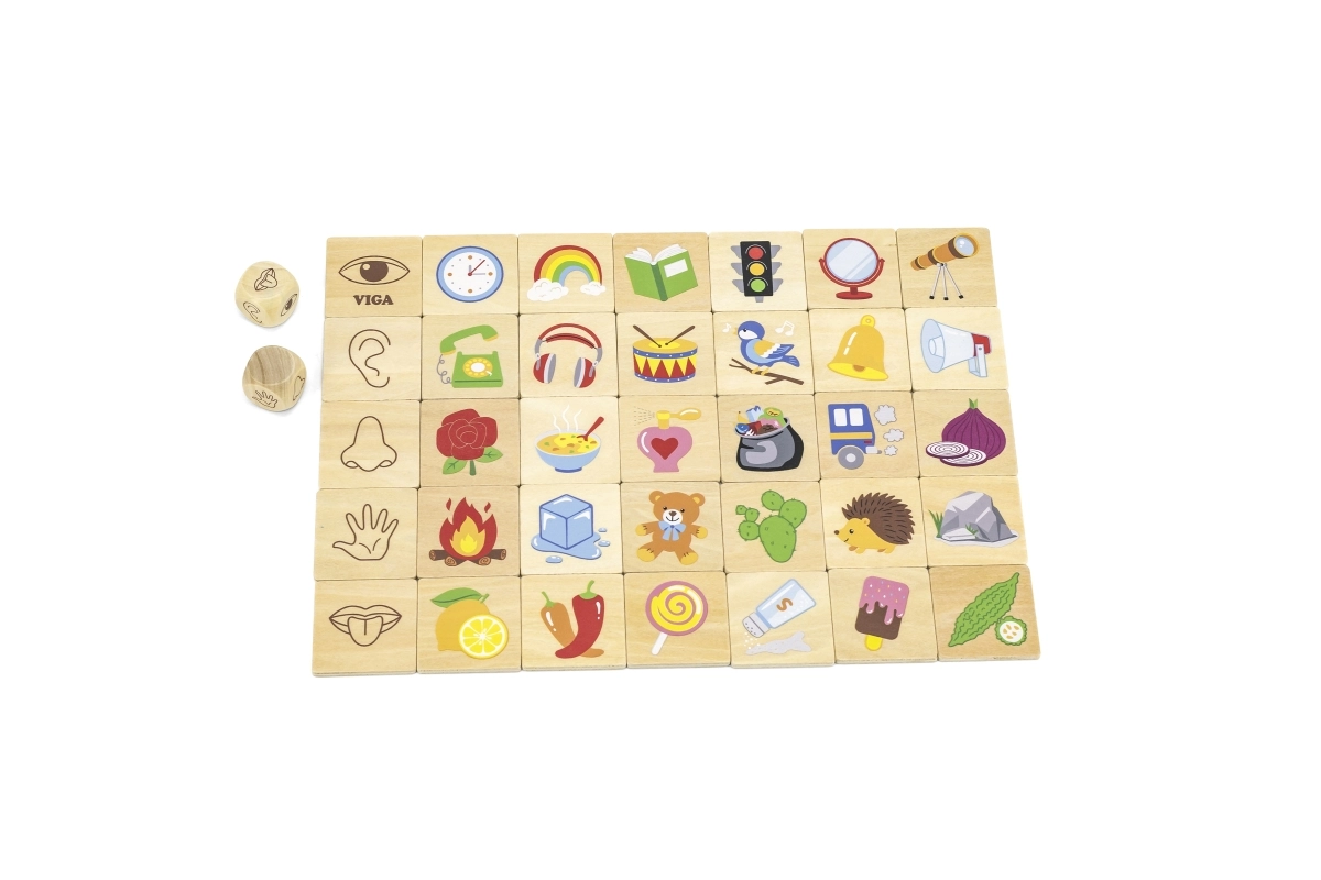 Το εκπαιδευτικό παιχνίδι ξύλινο παζλ VIGA προσφέρει έναν ιδανικό τρόπο για τα παιδιά να αναπτύξουν τη σκέψη και τον συντονισμό τους. Ο στόχος είναι η αντιστοίχιση αντικειμένων με τις επιλεγμένες αισθήσεις, συμπεριλαμβάνοντας ποικίλα καθημερινά αντικείμενα.