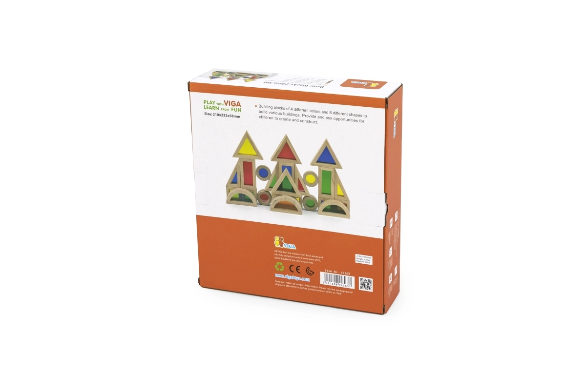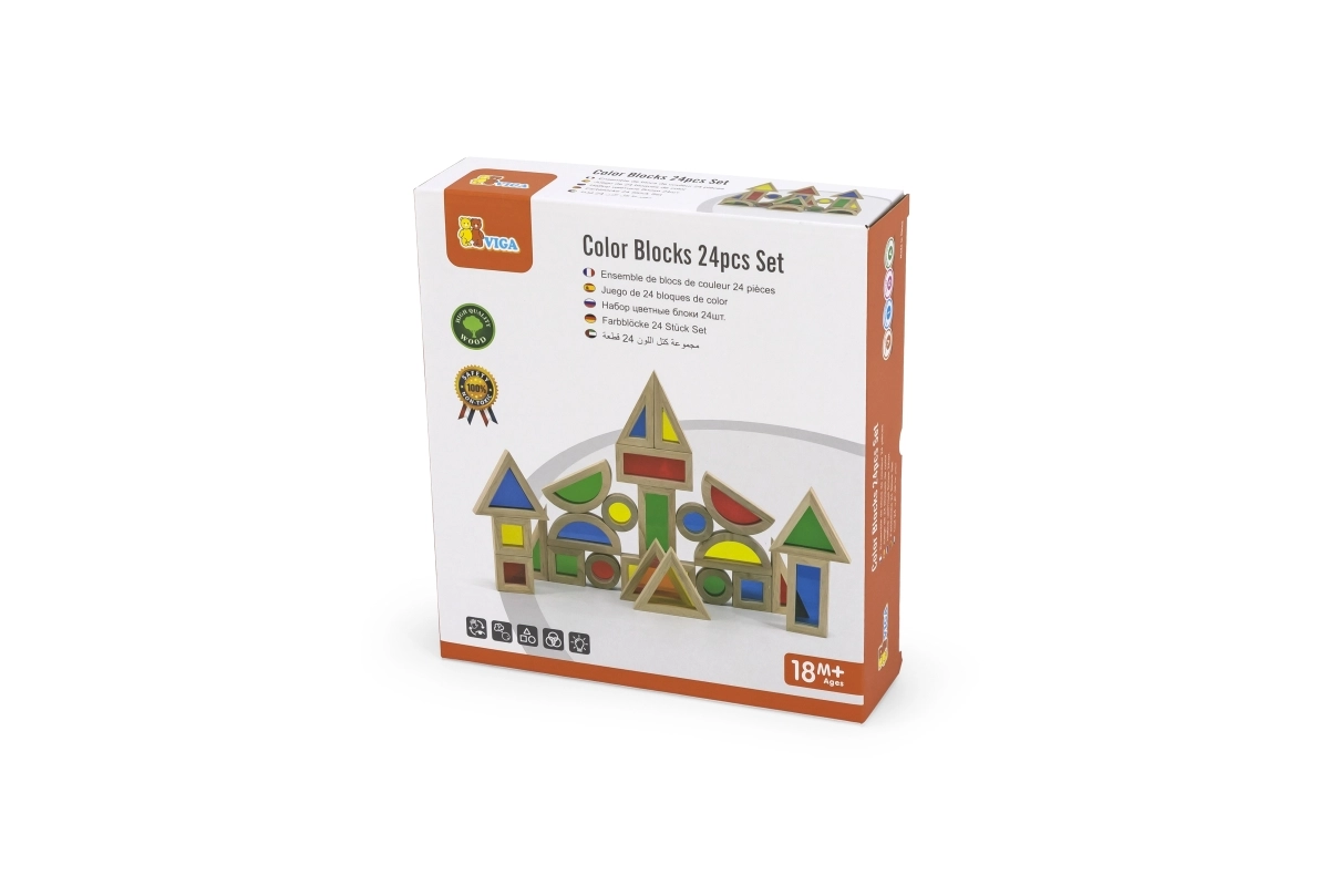 Το σετ 24 ξύλινων πολύχρωμων κύβων Viga έχει σχεδιαστεί για παιδιά από 18 μηνών. Αυτό το εκπαιδευτικό και διασκεδαστικό προϊόν υποστηρίζει τη δημιουργικότητα και την ανάπτυξη λεπτής κινητικότητας στα νήπια, ενώ είναι ασφαλές για μικρά παιδιά.