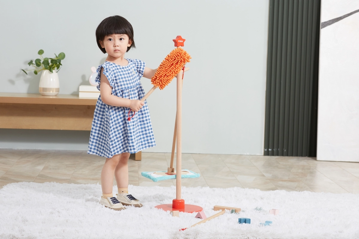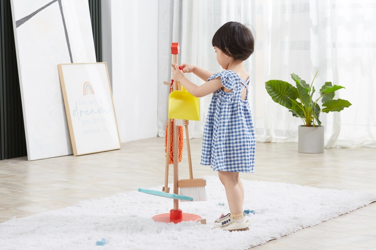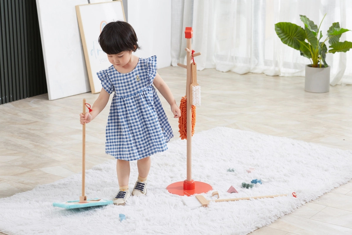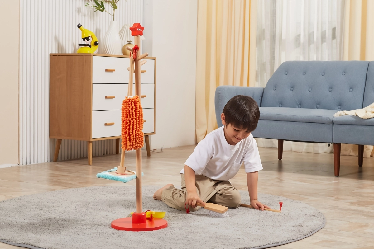 Χάρη στα ποικίλα εργαλεία καθαρισμού, τα παιδιά βελτιώνουν τη λεπτή κινητικότητα και την ισορροπία τους μέσα από το παιχνίδι.