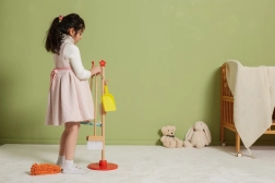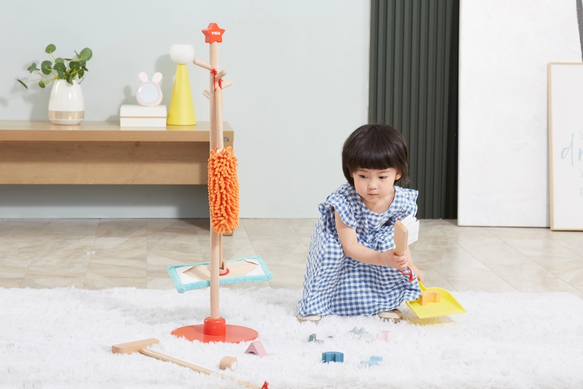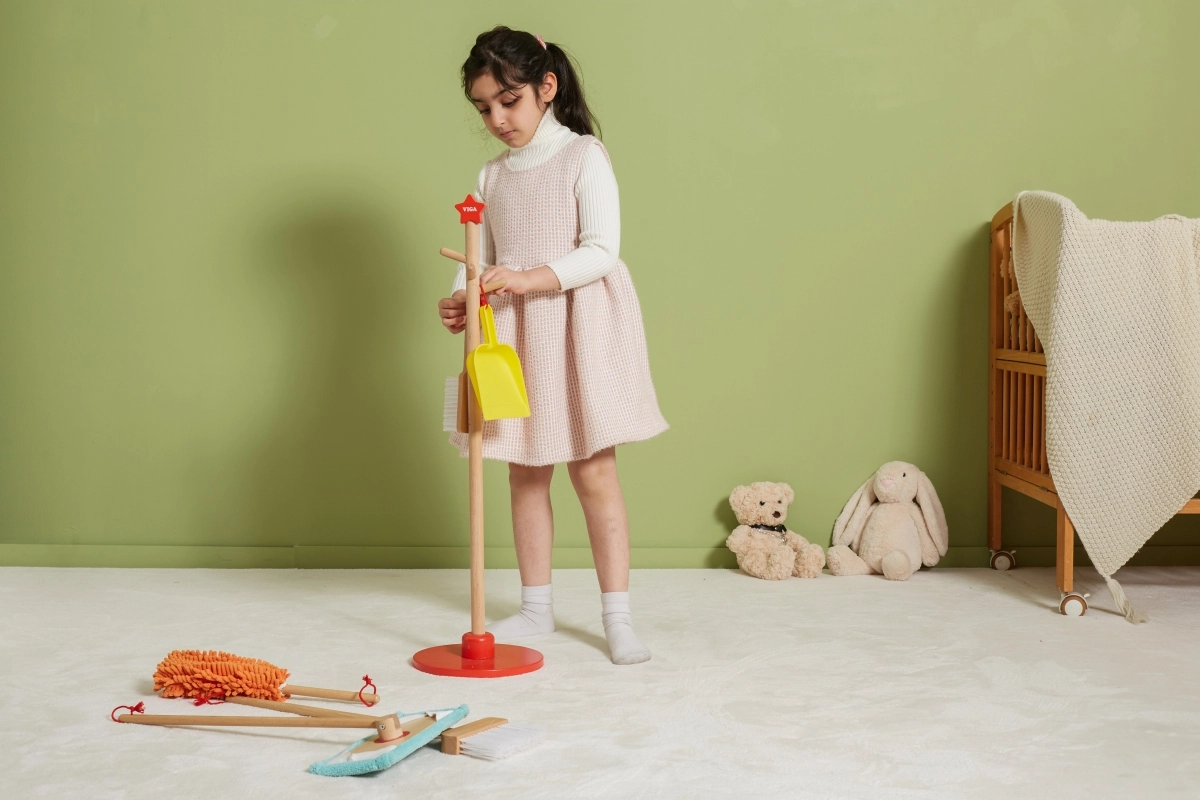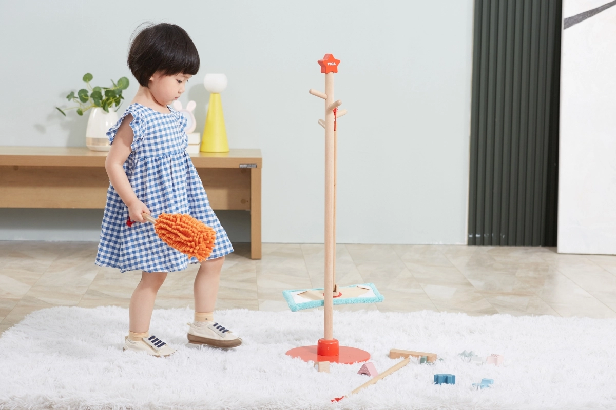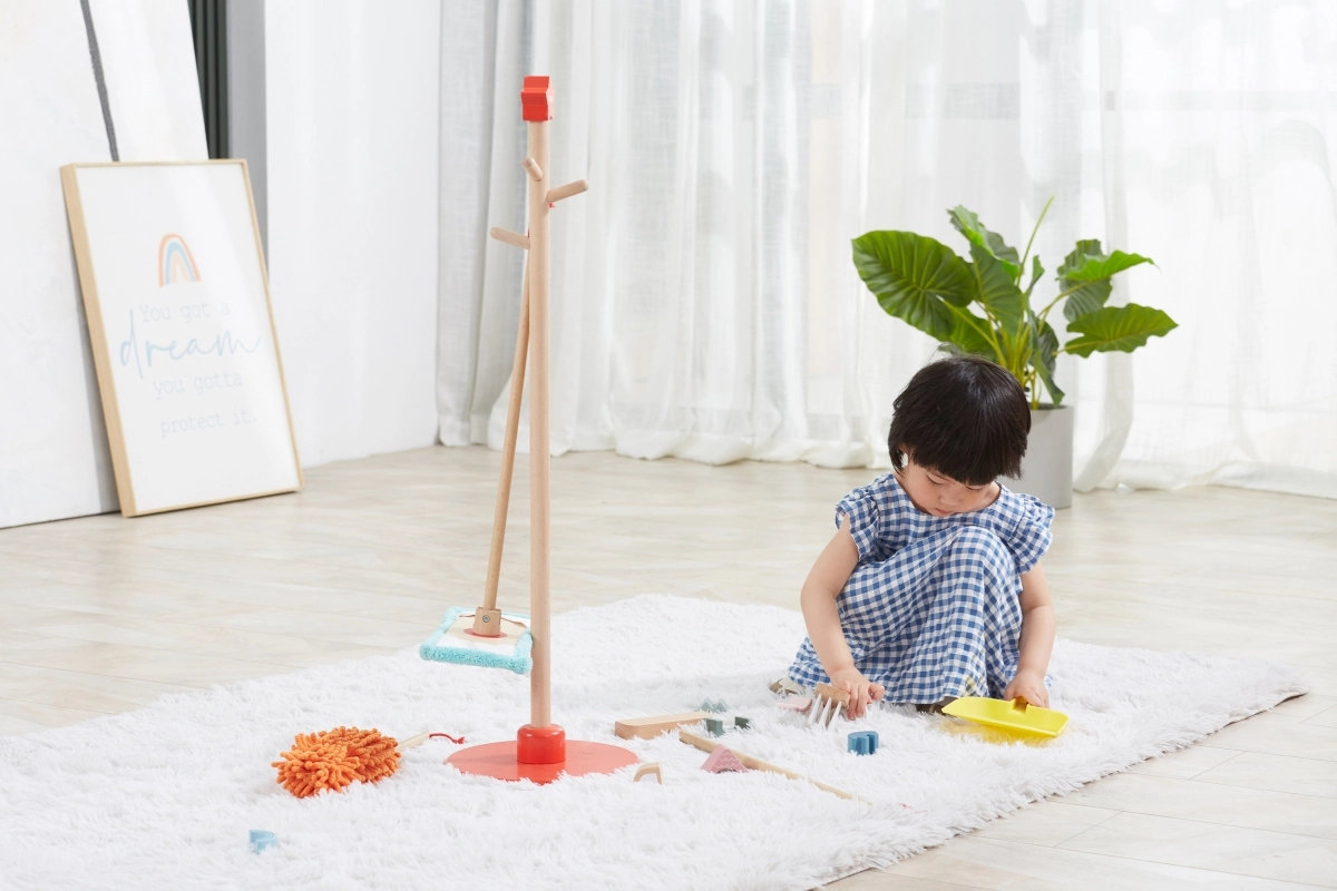 Χάρη στα ποικίλα εργαλεία καθαρισμού, τα παιδιά βελτιώνουν τη λεπτή κινητικότητα και την ισορροπία τους μέσα από το παιχνίδι.