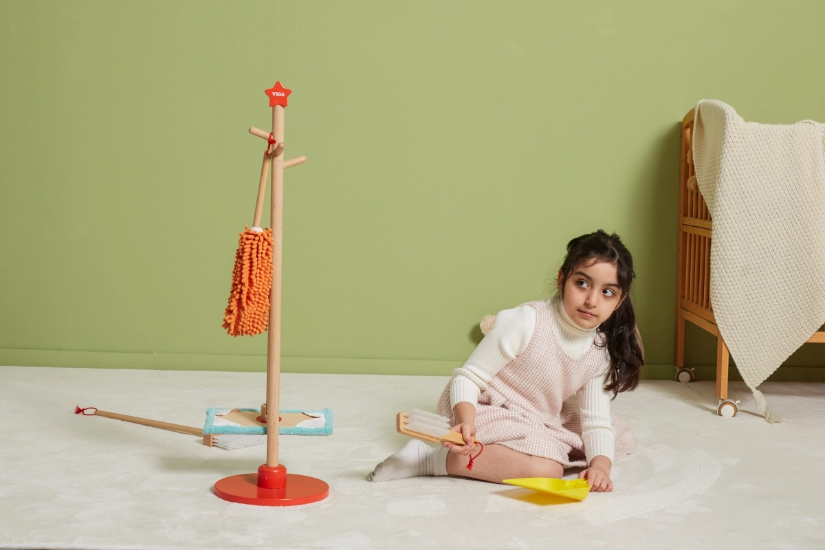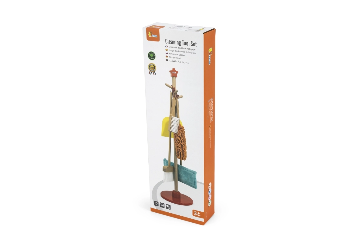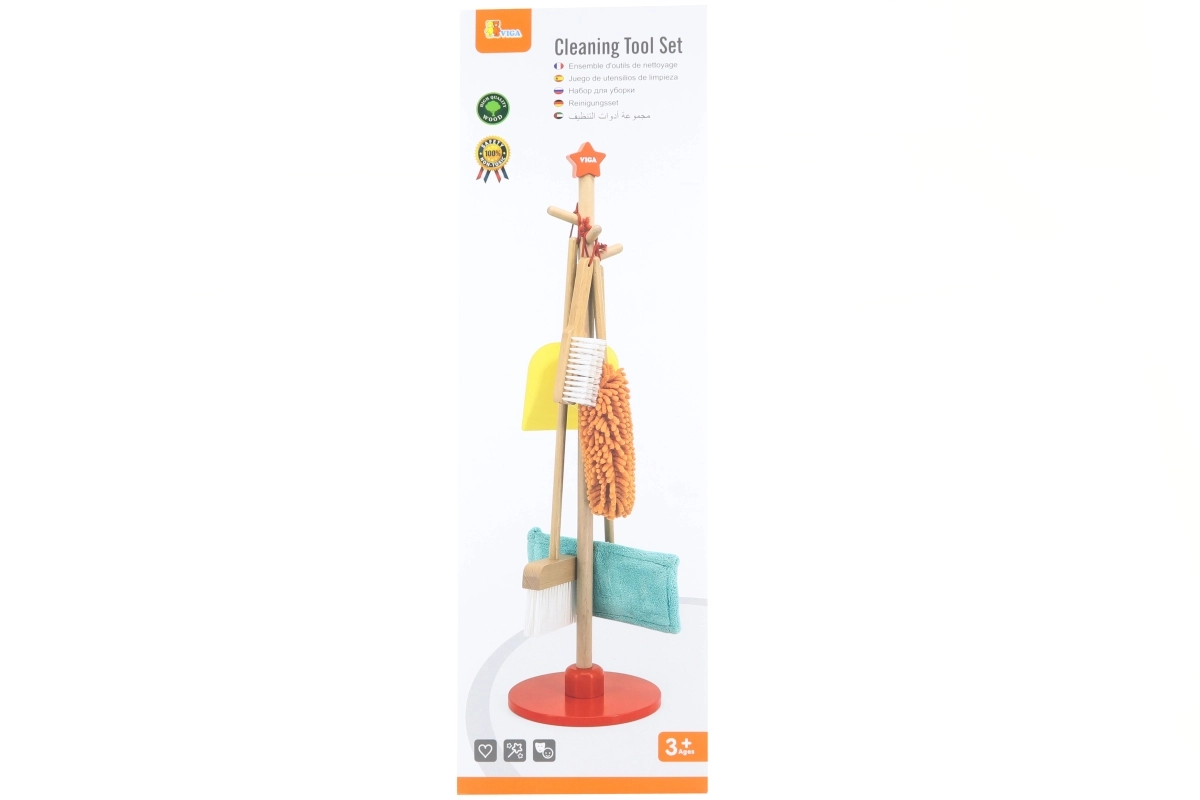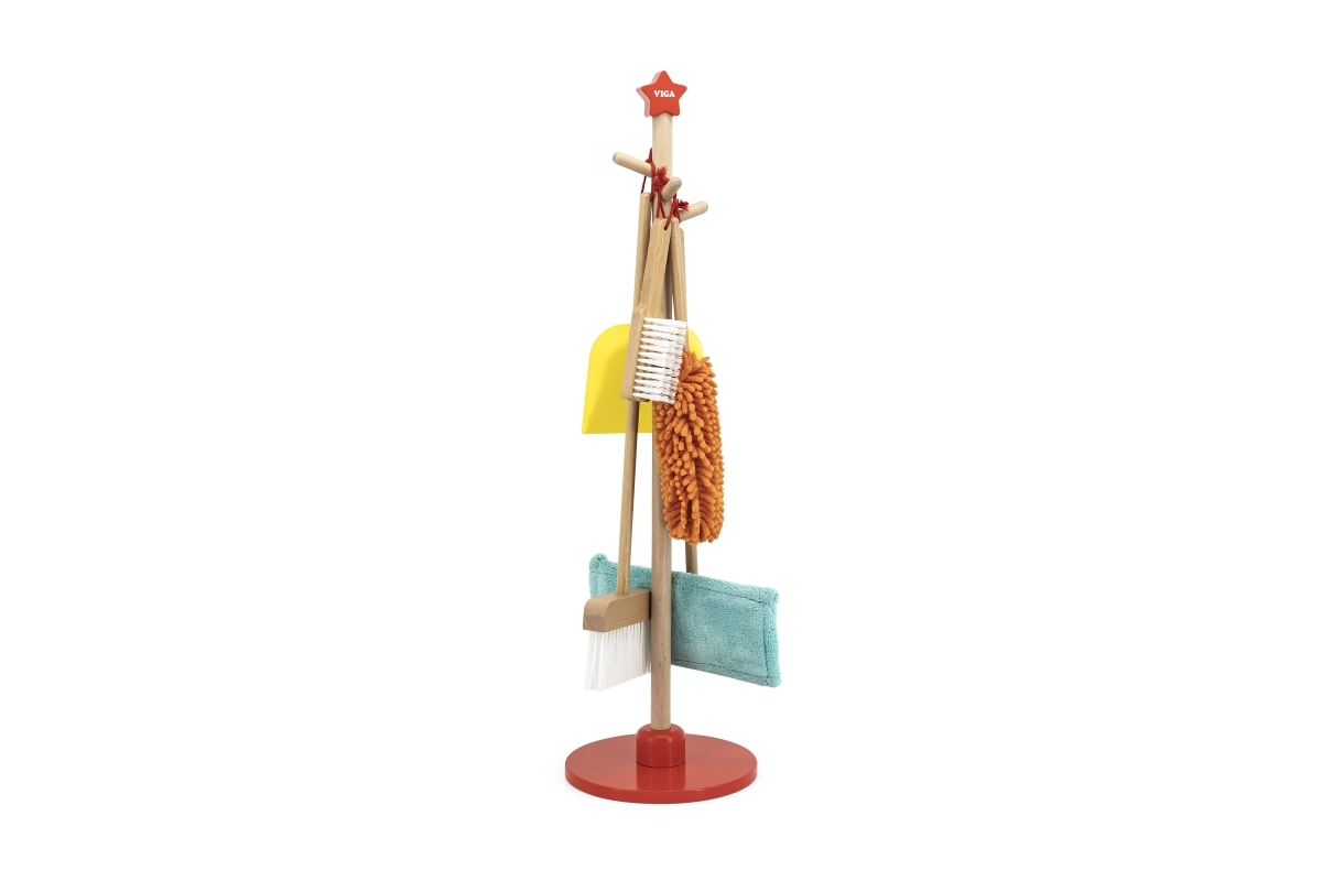 Το ξύλινο σετ καθαρισμού Viga είναι ιδανικό για μικρούς βοηθούς που θέλουν να συμμετέχουν ενεργά στη διατήρηση της τάξης. Με αυτό το σετ, που περιλαμβάνει σκούπα, σφουγγαρίστρα, ξεσκονόπανο και άλλα εργαλεία, τα παιδιά αναπτύσσουν τις κινητικές τους δεξιότητες και μαθαίνουν υπευθυνότητα μέσα από το παιχνίδι.