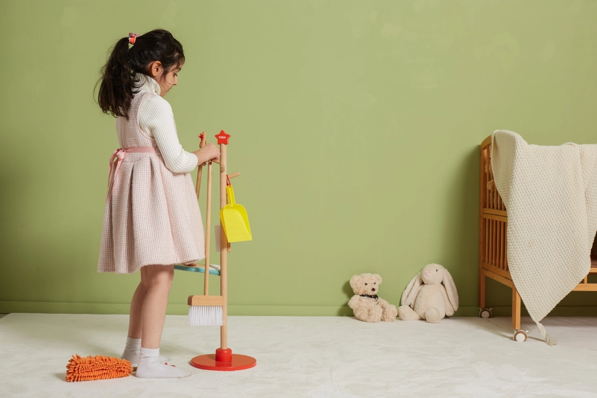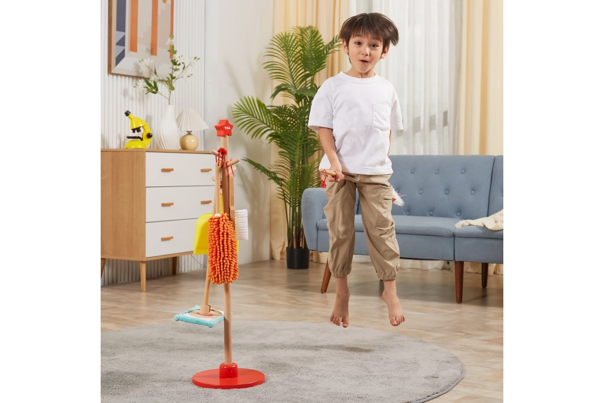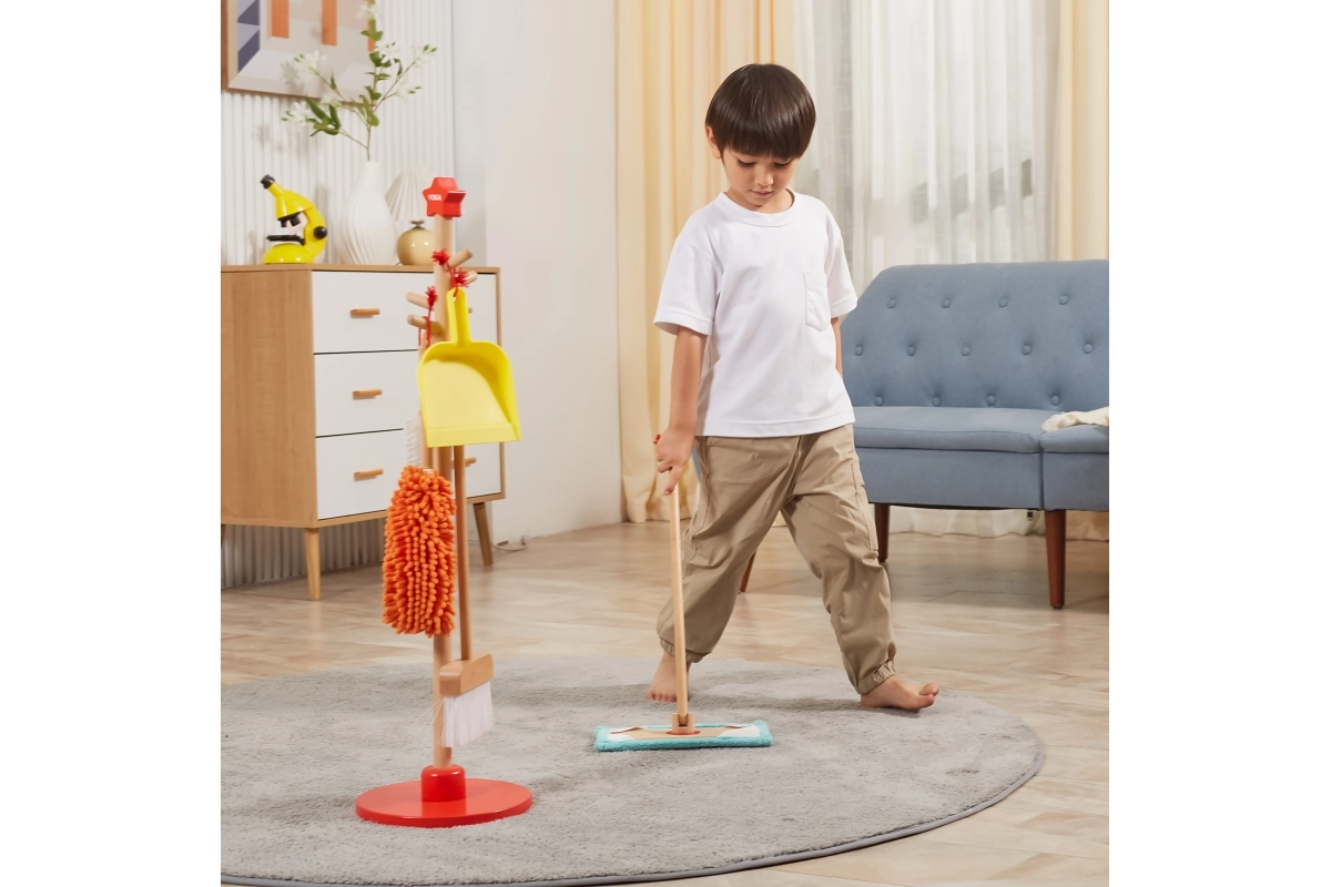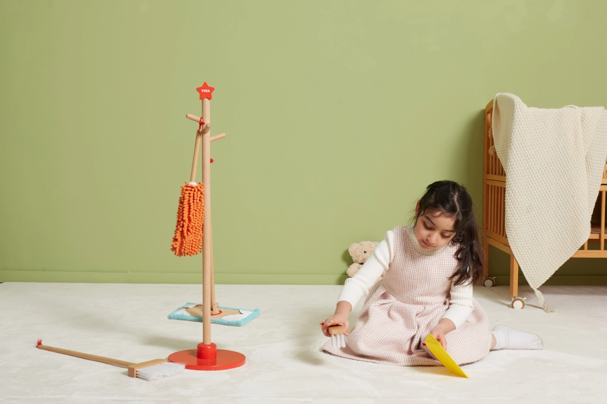 Το ξύλινο σετ καθαρισμού Viga είναι ιδανικό για μικρούς βοηθούς που θέλουν να συμμετέχουν ενεργά στη διατήρηση της τάξης. Με αυτό το σετ, που περιλαμβάνει σκούπα, σφουγγαρίστρα, ξεσκονόπανο και άλλα εργαλεία, τα παιδιά αναπτύσσουν τις κινητικές τους δεξιότητες και μαθαίνουν υπευθυνότητα μέσα από το παιχνίδι.