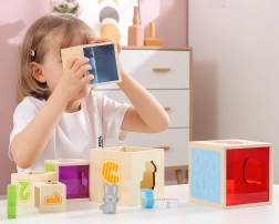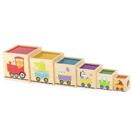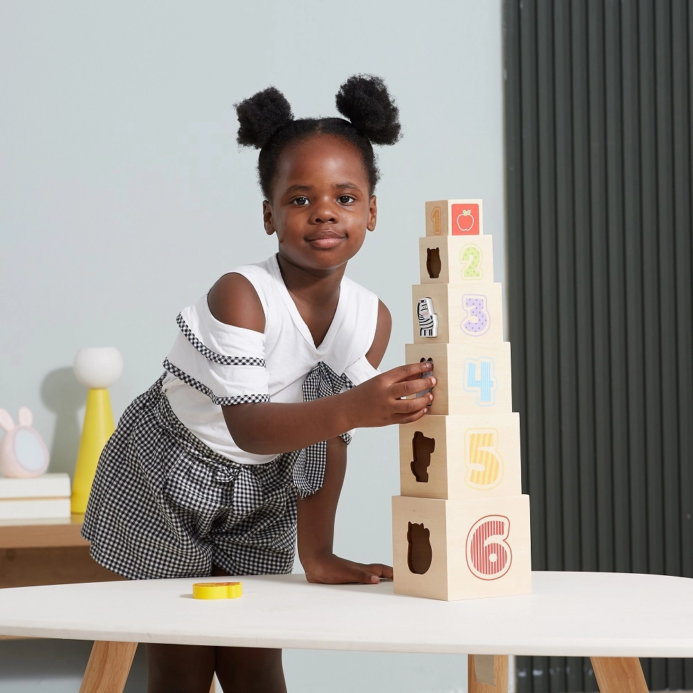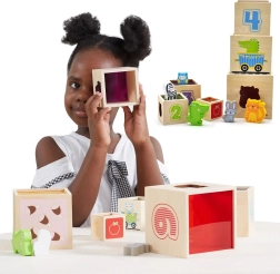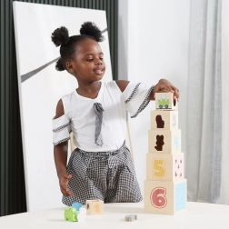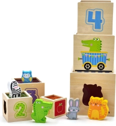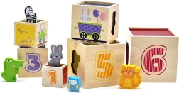 Αυτό το υπέροχο σετ περιλαμβάνει έξι τουβλάκια διαφόρων μεγεθών, καθένα με τα δικά του ξεχωριστά μοτίβα. Έτσι τα παιδιά μαθαίνουν να ξεχωρίζουν αριθμούς, σχήματα, χρώματα, μεγέθη και ζώα. Τα τουβλάκια μπορούν να τοποθετηθούν εύκολα το ένα μέσα στο άλλο ή να στοιβαχθούν, βοηθώντας τα παιδιά να κατανοήσουν την έννοια της οργάνωσης και της ακολουθίας.