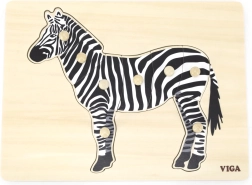 Αυτό το ξύλινο παζλ με ζέβρα είναι το ιδανικό πρώτο παζλ για τους μικρότερους. Τα επιμέρους κομμάτια με στρογγυλές λαβές πιάννονται εύκολα, υποστηρίζοντας τη σωστή λαβή των δαχτύλων και ενισχύοντας τη συγκέντρωση. Το ασπρόμαυρο, υψηλής αντίθεσης μοτίβο τραβά το ενδιαφέρον και παρακινεί για επαναλαμβανόμενο παιχνίδι.