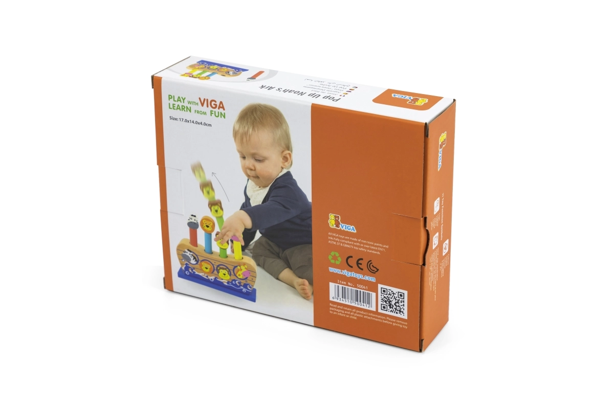 Τα ξύλινα πηδηχτά ζωάκια Viga θα ενθουσιάσουν κάθε παιδί με τα έντονα χρώματα τους και τις χαρούμενες φιγούρες καμηλοπάρδαλης, μαϊμούς, λιονταριού και ζέβρας. Αρκεί να πατήσετε το κεφαλάκι και το ζωάκι από την κιβωτό του Νώε θα πεταχτεί – ένα διασκεδαστικό παιχνίδι που ενισχύει τον συντονισμό ματιού–χεριού, την εκμάθηση χρωμάτων και την αναγνώριση ζώων. Η ασφαλής κατασκευή από ποιοτικό ξύλο και τα μη τοξικά χρώματα εξασφαλίζουν ήρεμο και χαρούμενο παιχνίδι.