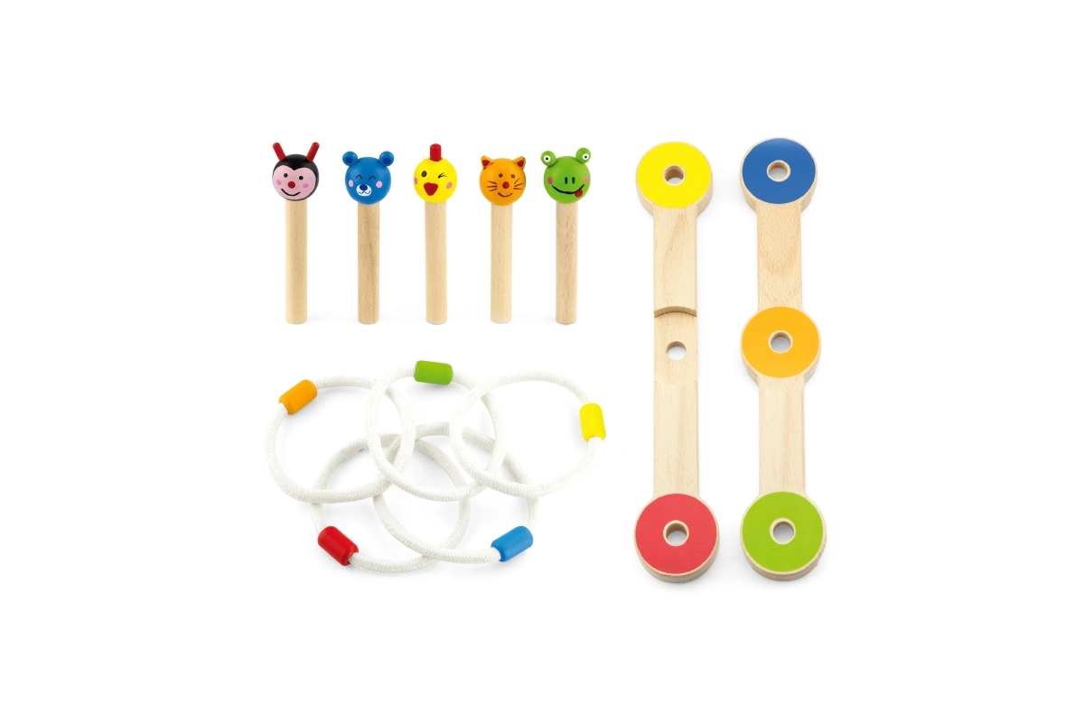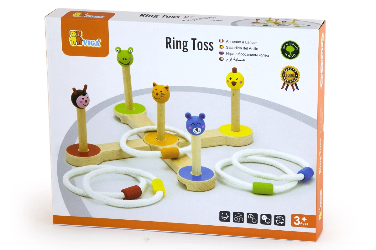Το ξύλινο παιχνίδι VIGA ρίψης δαχτυλιδιών είναι ένα διασκεδαστικό και ενεργητικό παιχνίδι για την οικογένεια και τους φίλους, που ενισχύει την συντονισμένη κίνηση χεριού-ματιού και τις δεξιότητες των παιδιών σας χάρη στις έγχρωμες φιγούρες και τους απλούς κανόνες.