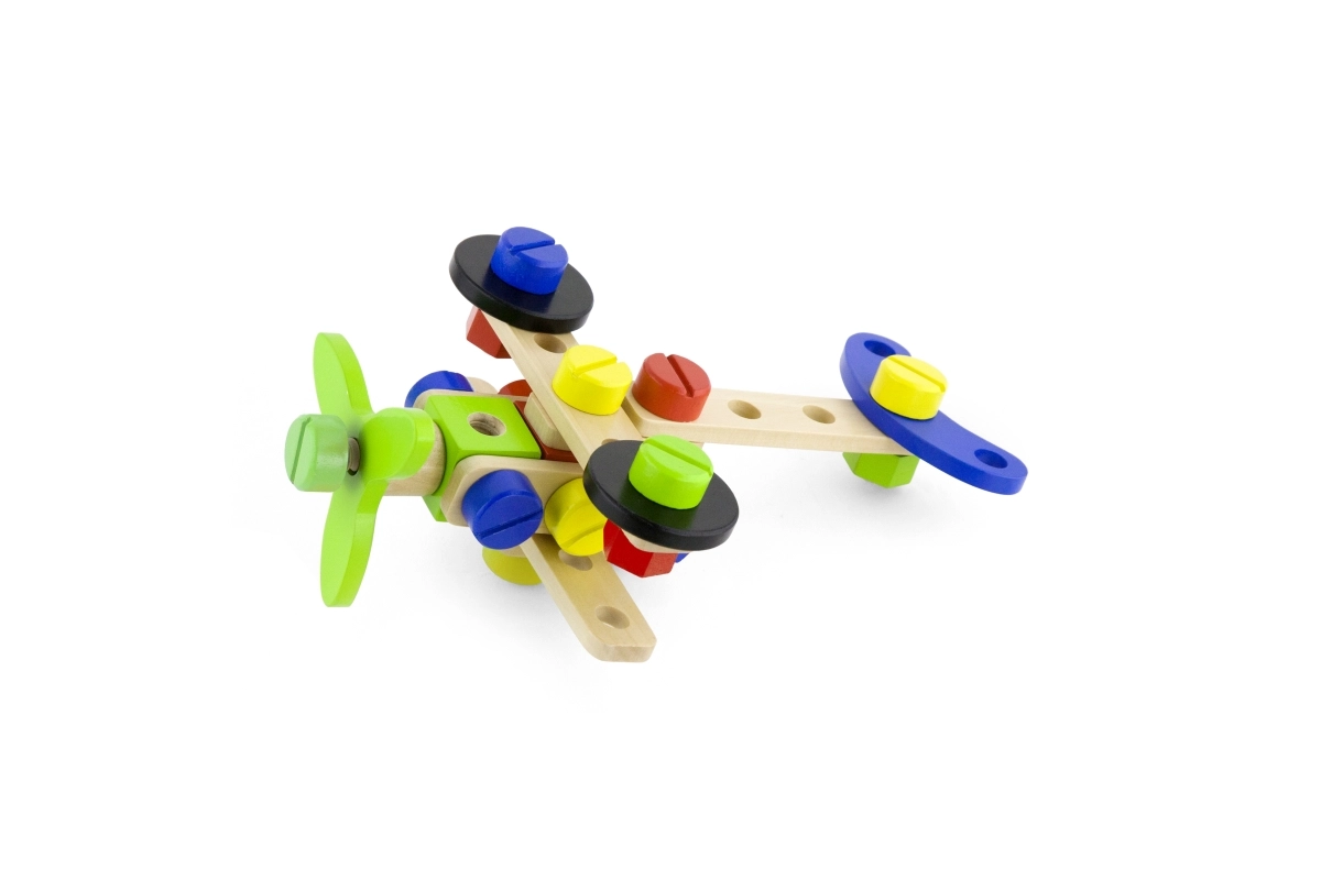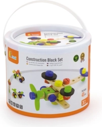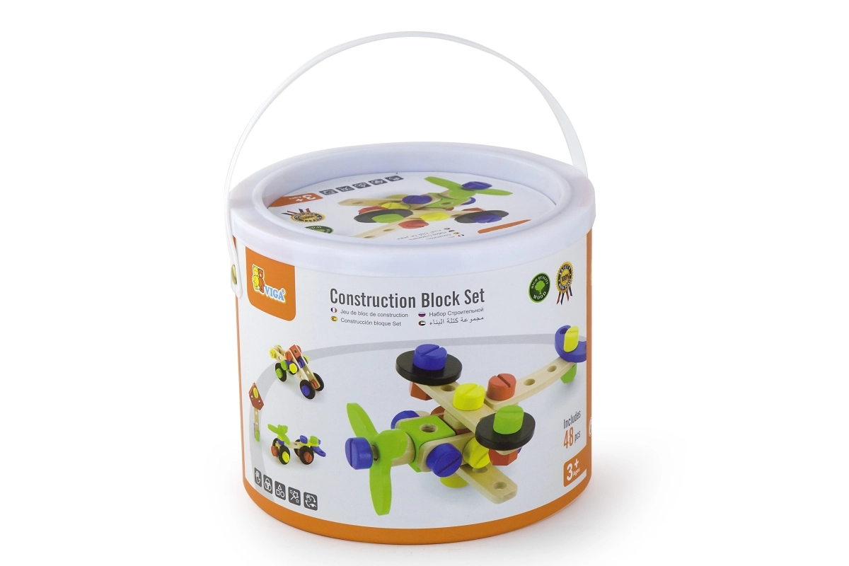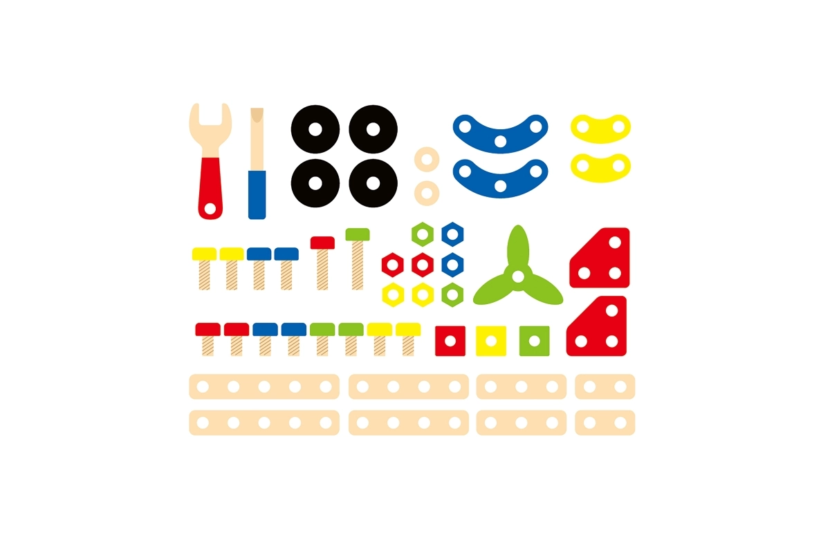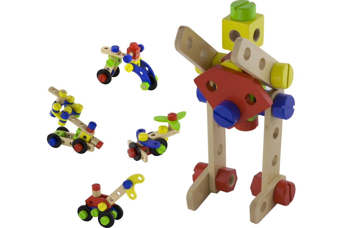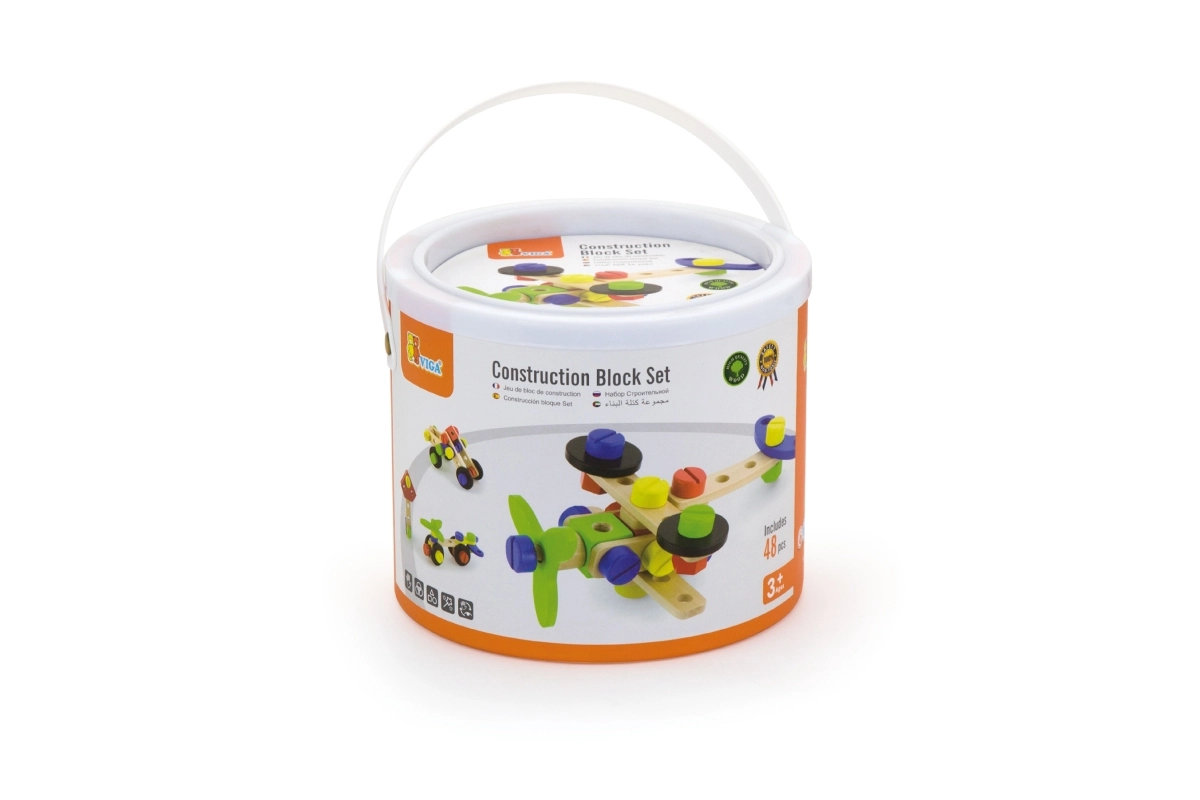 Αυτό το ξύλινο σετ κατασκευών τύπου κονστράκτορας είναι ιδανική επιλογή για τις πρώτες τεχνικές κατασκευές. Τα παιδιά μπορούν να δημιουργήσουν δικές τους ιδέες ή να εμπνευστούν από το συνοδευτικό φυλλάδιο με εικονικές οδηγίες. Ο συμπαγής κουβάς με χερούλι διευκολύνει τη μεταφορά και την αποθήκευση, ώστε το σετ να είναι πάντα πρόχειρο και τα κομμάτια να μην χάνονται.