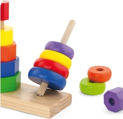 Η ξύλινη πυραμίδα παζλ είναι ένα ιδανικό παιχνίδι για παιδιά από 2 ετών, που υποστηρίζει την ανάπτυξη της κινητικότητας και την αναγνώριση σχημάτων χάρη στα πολύχρωμα γεωμετρικά κομμάτια.