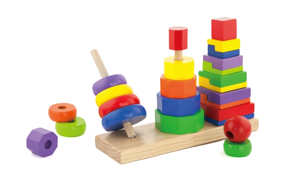 Η ποικιλία σχημάτων και χρωμάτων των ξύλινων κομματιών βοηθά τα παιδιά να αναγνωρίζουν και να ονομάζουν σχήματα και χρώματα.