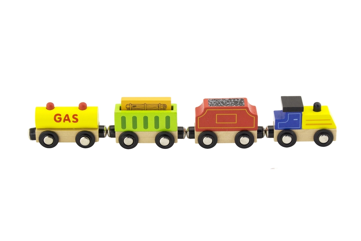 Τα βαγόνια ενώνονται μεταξύ τους με ισχυρούς μαγνήτες και είναι συμβατά με τις περισσότερες ξύλινες σιδηροδρομικές πίστες, ώστε να ενταχθούν εύκολα στη συλλογή σας.