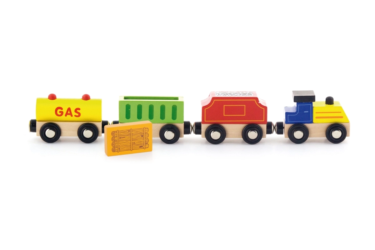 Πολύχρωμα βαγόνια με διαφορετικούς τύπους φορτίου ενθαρρύνουν τη συζήτηση για την ενέργεια και τη λογιστική/μεταφορά και καλλιεργούν τη φαντασία των παιδιών.
