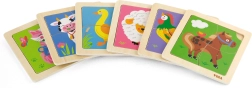 Το ξύλινο παζλ Viga περιλαμβάνει τέσσερα θεματικά κομμάτια που τοποθετούνται εύκολα σε σανίδα με εικόνα. Κάθε κομμάτι είναι κατασκευασμένο από ποιοτικό ξύλο και βαμμένο με ασφαλή, μη τοξικά χρώματα, που διασφαλίζουν την ασφάλεια των παιδιών και του περιβάλλοντος.