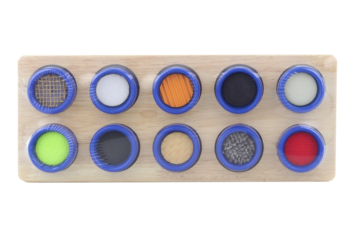 Τα παιδιά αναγνωρίζουν τις επιφάνειες μόνο με την αφή και μαθαίνουν να τις αντιστοιχίζουν σωστά, ενισχύοντας τη συγκέντρωση και την αισθητηριακή ευαισθησία.