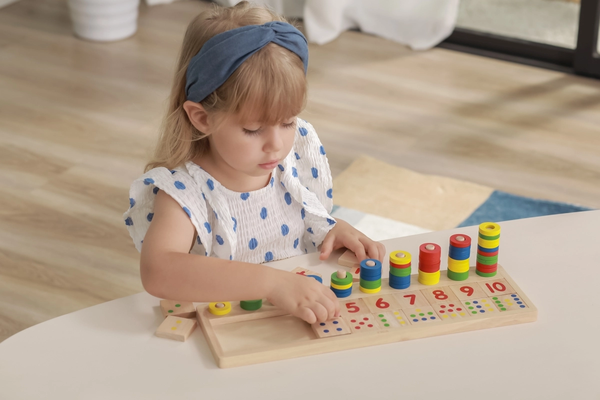 Με τα πολύχρωμα δαχτυλίδια και τα αριθμημένα πλακίδια, τα παιδιά αναπτύσσουν τις μαθηματικές τους δεξιότητες και τη numerική σκέψη.