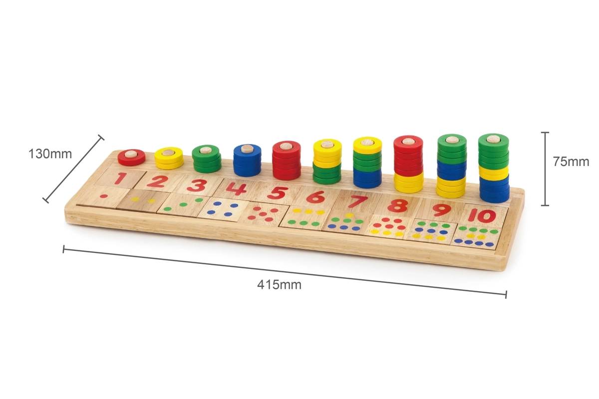 Το παιχνίδι είναι κατασκευασμένο από οικολογικό ξύλο, προσφέροντας ασφάλεια και ευχάριστη αίσθηση στην αφή. Χάρη στα εύκολα αποσπώμενα πλακίδια με αριθμούς, τα παιδιά μπορούν να μάθουν και απλές μαθηματικές πράξεις όπως πρόσθεση και αφαίρεση.