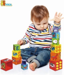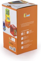 Κάθε πλευρά του τουβλακιού είναι διακοσμημένη με διαφορετικά μοτίβα, όπως ζωάκια, αριθμοί, φρούτα και μέσα μεταφοράς, που εμπλουτίζουν τη φαντασία των παιδιών.