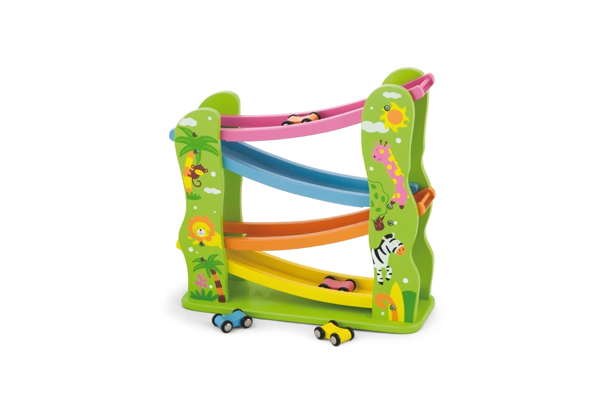 Αυτή η όμορφα χρωματιστή ξύλινη τσουλήθρα είναι ιδανική για τους μικρούς σας, που θέλουν να παίζουν και ταυτόχρονα να αναπτύσσουν τις δεξιότητές τους. Περιλαμβάνει ράμπα με πολλά επίπεδα σε διαφορετικά χρώματα και επιτρέπει στα αυτοκινητάκια να κινούνται ομαλά στη διαδρομή.