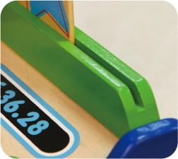 Η στιβαρή ξύλινη κατασκευή και τα ανθεκτικά αξεσουάρ εξασφαλίζουν μεγάλη διάρκεια ζωής. Ο πολύχρωμος σχεδιασμός προσκαλεί στο παιχνίδι και ενισχύει τη φαντασία και την καθημερινή ενασχόληση.