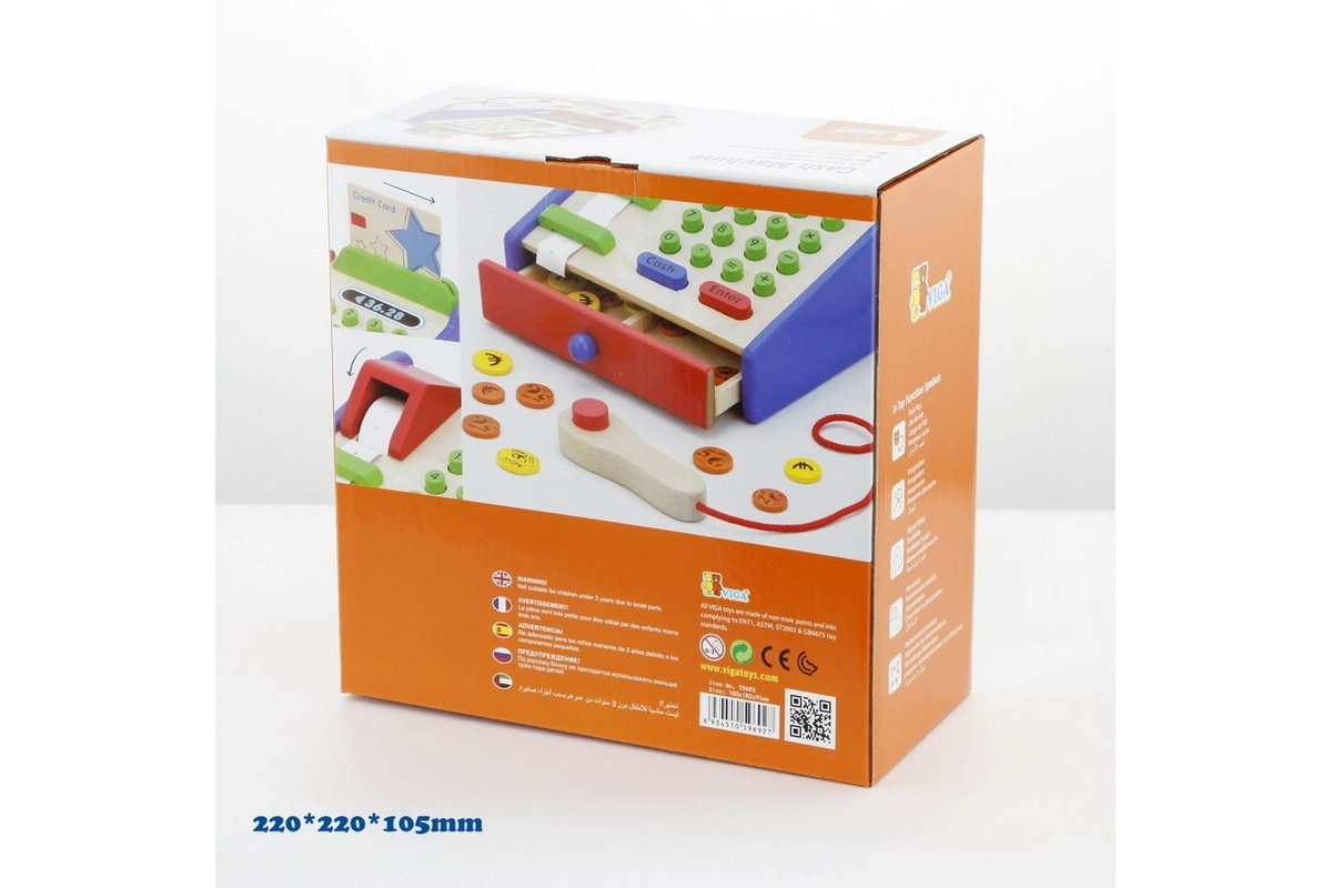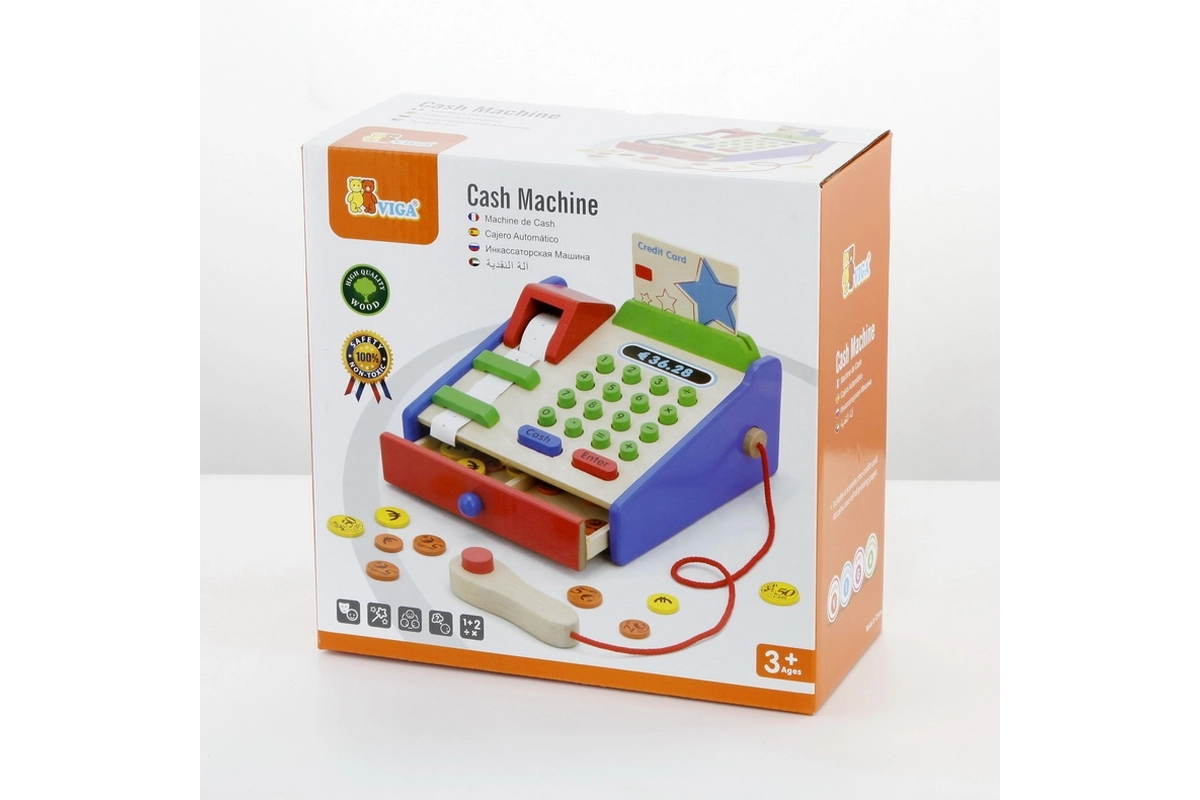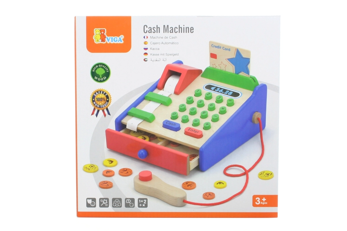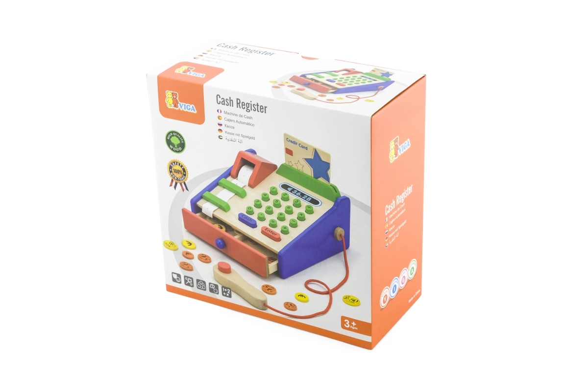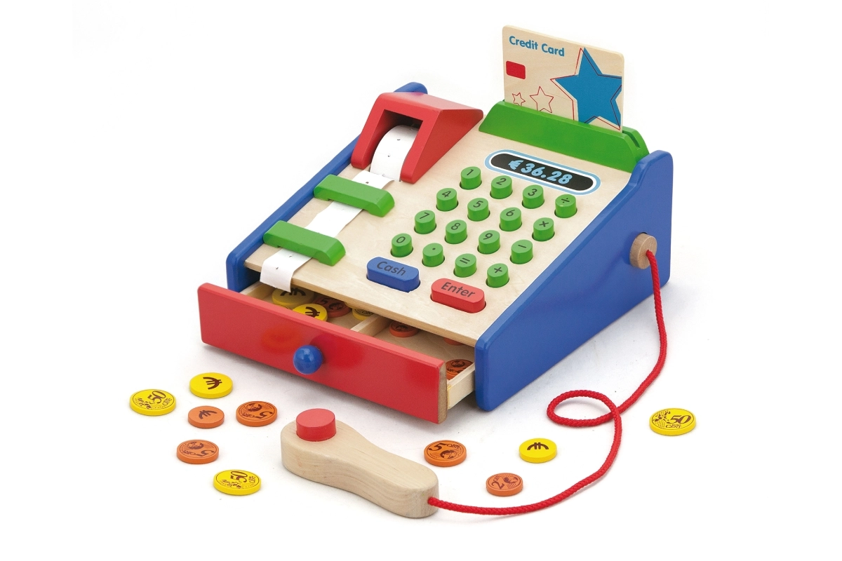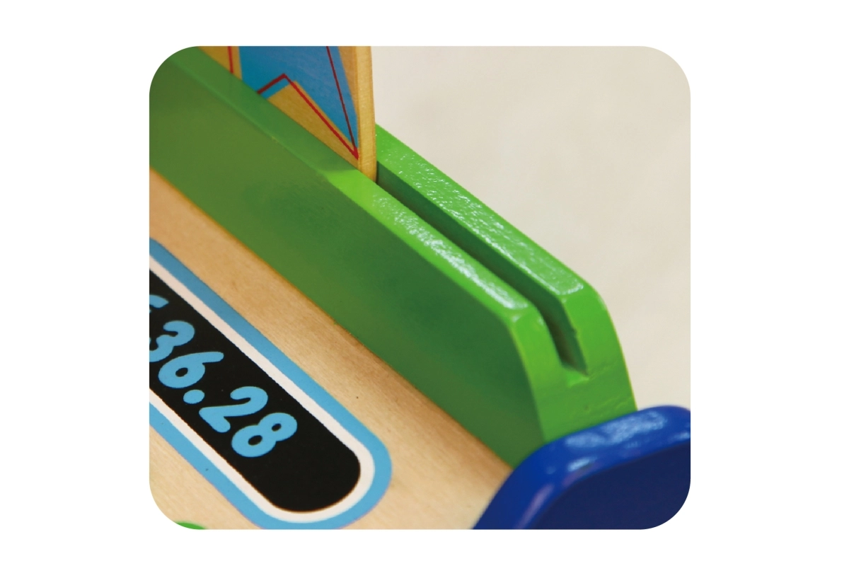 Η ταμειακή είναι κατασκευασμένη κυρίως από ξύλο και συμπληρώνεται με ανθεκτικά πλαστικά στοιχεία. Ιδανική για παιχνίδι καταστήματος στο σπίτι ή στο νηπιαγωγείο, όπου καλλιεργεί φυσικά τη λογική σκέψη, τις γνωστικές δεξιότητες και τη σχέση με τους αριθμούς, στο πνεύμα της Montessori.