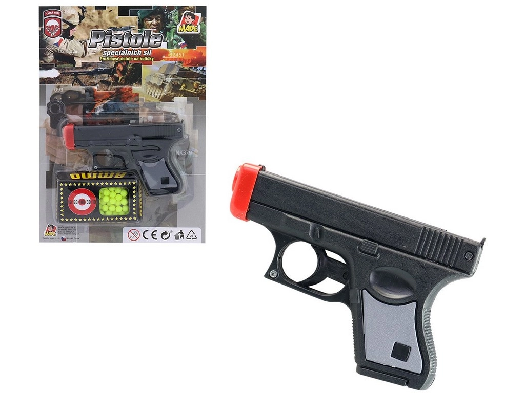 Διασκεδαστικό παιδικό πιστόλι με μπιλάκια μήκους 11 εκ. για μικρούς σκοπευτές από 3 ετών. Περιλαμβάνει σετ μπιλακιών και συσκευασία με τσεχικό σχεδιασμό. Ελαφρύ, ασφαλές και εύκολο στον χειρισμό παιχνίδι για παιχνίδι στο σπίτι και σε εξωτερικό χώρο. Ανταλλακτικά μπιλάκια μπορούν να αγοραστούν ξεχωριστά.