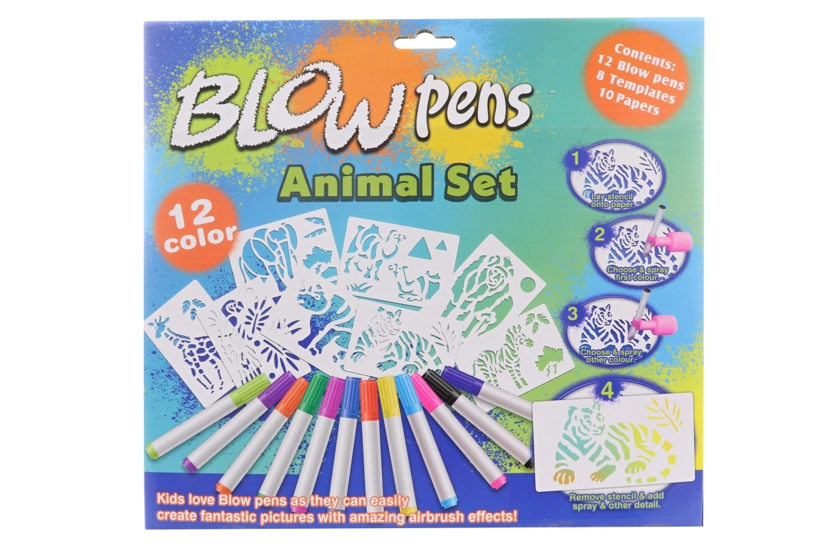 Ανακαλύψτε τη χαρά της δημιουργίας με το δημιουργικό σετ μαρκαδόρων με φύσημα με θέμα το σαφάρι. Η μεγάλη σετ περιλαμβάνει 12 πολύχρωμους μαρκαδόρους, 8 στένσιλ, 6 χαρτιά, ένα πρακτικό χάρτινο σταντ με βάση και επιστόμιο για φύσημα με αντλία για εύκολη και καθαρή δημιουργία. Ιδανικό για παιδιά από 3 ετών.