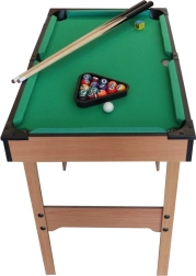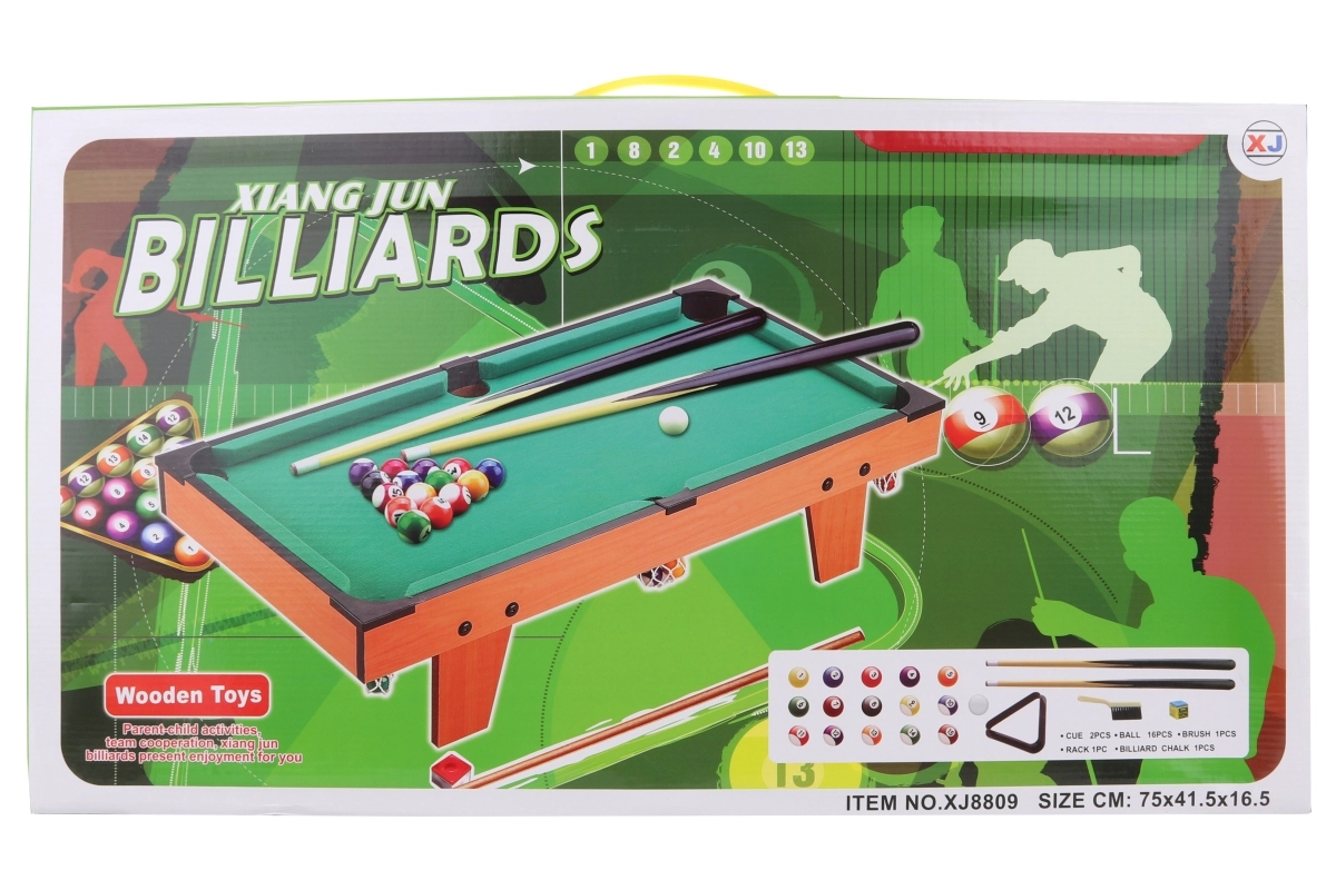 Συμπαγές παιδικό μπιλιάρδο σε ποιοτική ξύλινη κατασκευή που προσφέρει εξαιρετική διασκέδαση για μικρούς και μεγάλους παίκτες. Στη συσκευασία περιλαμβάνονται 2 στέκες, 16 μπάλες μπιλιάρδου και πλήρης εξοπλισμός. Χάρη στις διαστάσεις του είναι ιδανικό για το παιδικό δωμάτιο και για την πρώτη γνωριμία με τους κανόνες του παιχνιδιού.