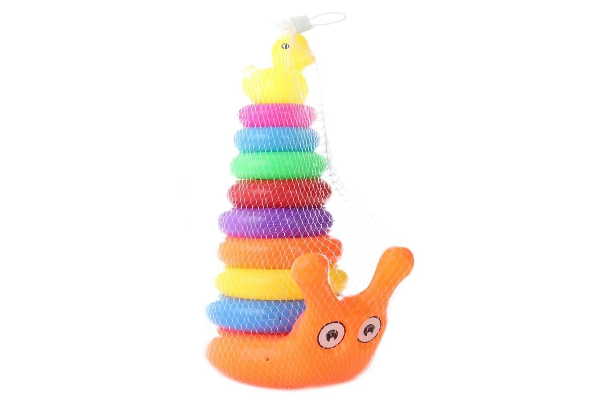 Ο χαριτωμένος πύργος με δαχτυλίδια σε σχήμα σαλιγκαριού θα ενθουσιάσει κάθε μικρό παιδί. Χάρη στην προοδευτική τοποθέτηση των δαχτυλιδιών, τα παιδιά εξασκούν την υπομονή, τη λογική σκέψη και τη δεξιοτεχνία. Το τελευταίο κομμάτι είναι ένα πλαστικό παπάκι που δίνει στο παιχνίδι έναν διασκεδαστικό και ενθαρρυντικό στόχο.