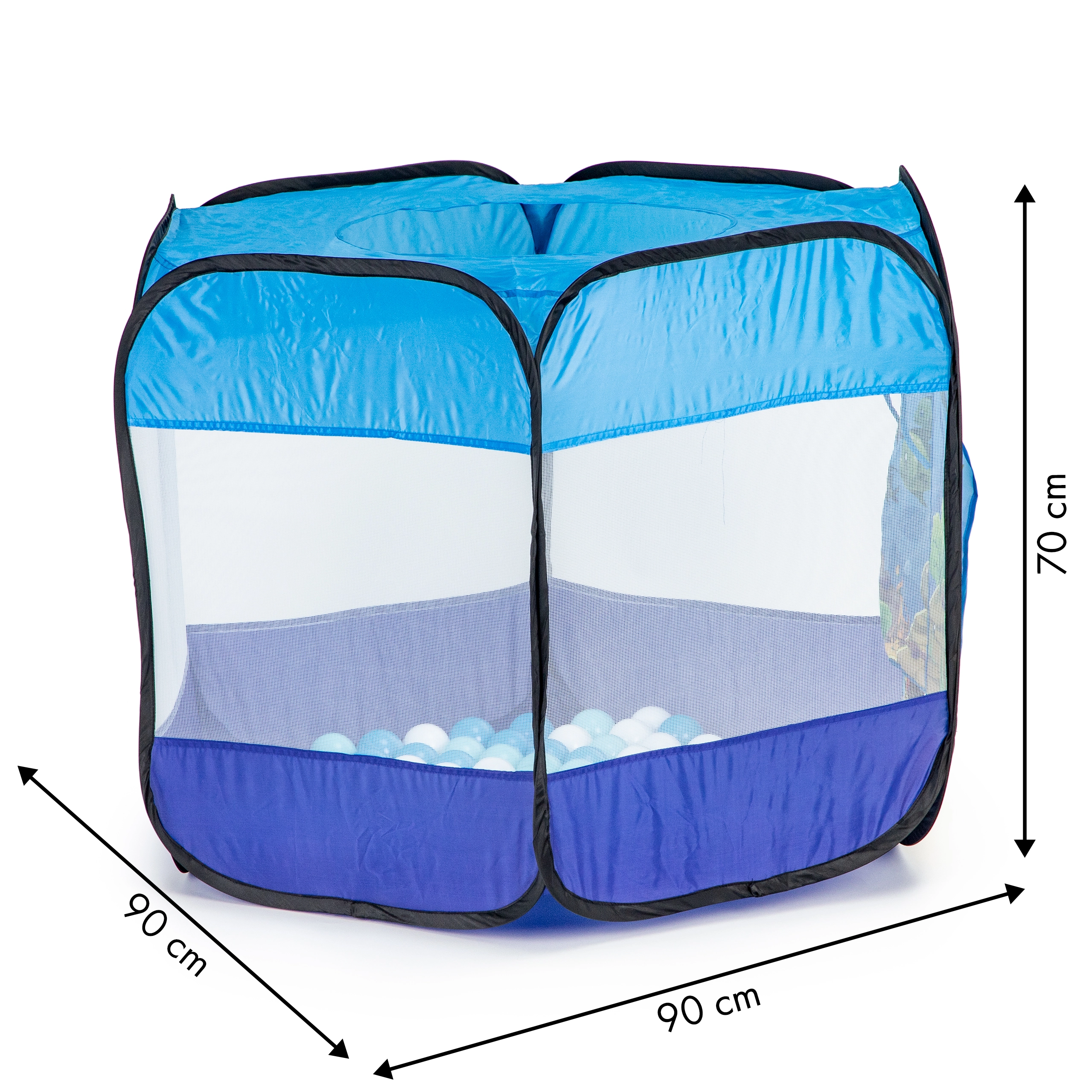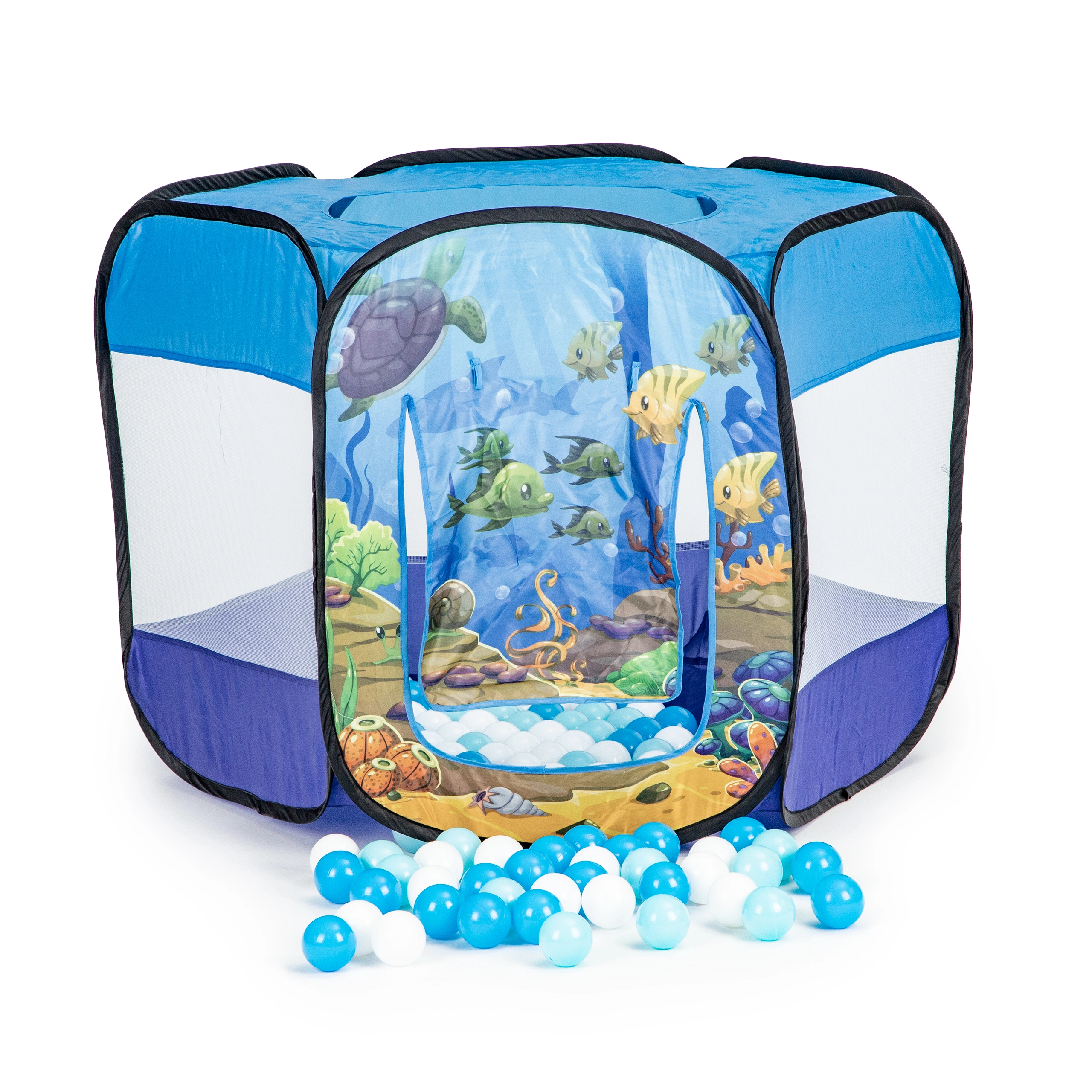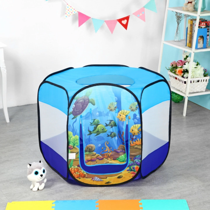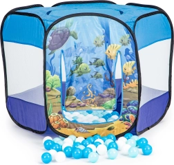 Ελαφριά και σταθερή σκηνή pop-up για παιδιά με θέμα τον υποθαλάσσιο κόσμο, που μετατρέπει κάθε δωμάτιο ή κήπο σε διασκεδαστική παιδική χαρά. Περιλαμβάνει 100 πολύχρωμα μπαλάκια, διάτρητα δικτυωτά τοιχώματα, ρολοκουρτινάτη είσοδο και παράθυρο στην οροφή. Η αυτοαναδυόμενη κατασκευή εξασφαλίζει γρήγορο στήσιμο και εύκολη μεταφορά.