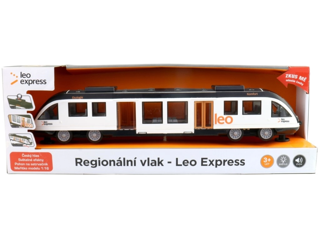 Το κομψό τρένο LEO EXPRESS προσφέρει στα παιδιά διασκέδαση εμπνευσμένη από τον πραγματικό σιδηρόδρομο. Χάρη στις τσεχικές ανακοινώσεις και τα φωτεινά εφέ, το παιχνίδι φαίνεται ρεαλιστικό και αναπτύσσει τη φαντασία και τη λεπτή κινητικότητα. Η κίνηση με αδράνεια εξασφαλίζει ομαλή εκκίνηση και ακινητοποίηση χωρίς την ανάγκη για γραμμές.