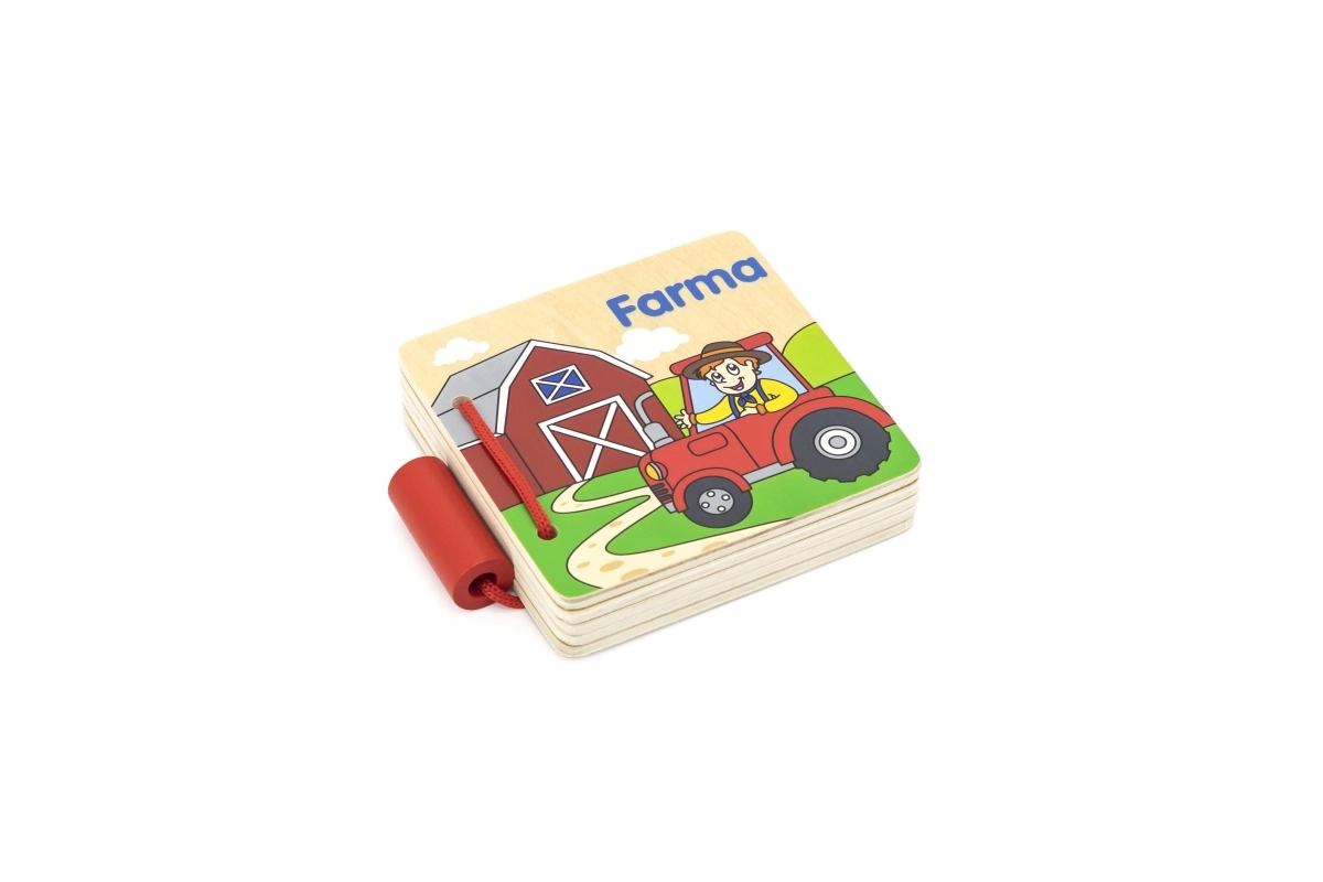 Αυτό το ξύλινο βιβλιαράκι με θέμα τη φάρμα είναι ένα υπέροχο βοήθημα για την πρώτη γνωριμία των παιδιών με τον κόσμο των ζώων. Οι ανθεκτικές ξύλινες σελίδες με καθαρές εικονογραφήσεις και τσεχικές λεζάντες βοηθούν στην ανάπτυξη της λεπτήs κινητικότητας, του λεξιλογίου και της συγκέντρωσης.